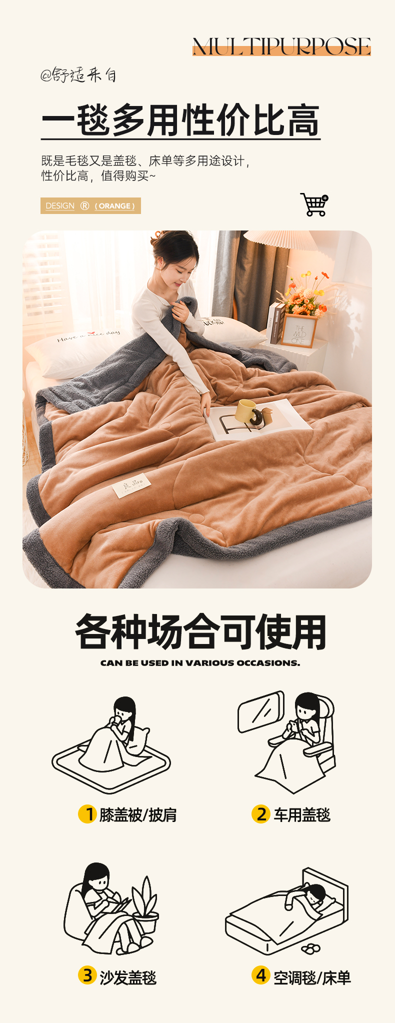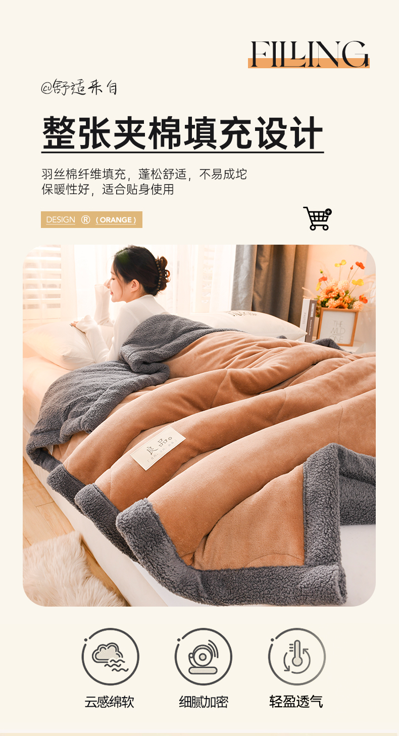 商品名称:恋绒家纺 2025新款三层牛奶绒夹棉毛毯复合盖毯直播外贸毯子 咖啡色