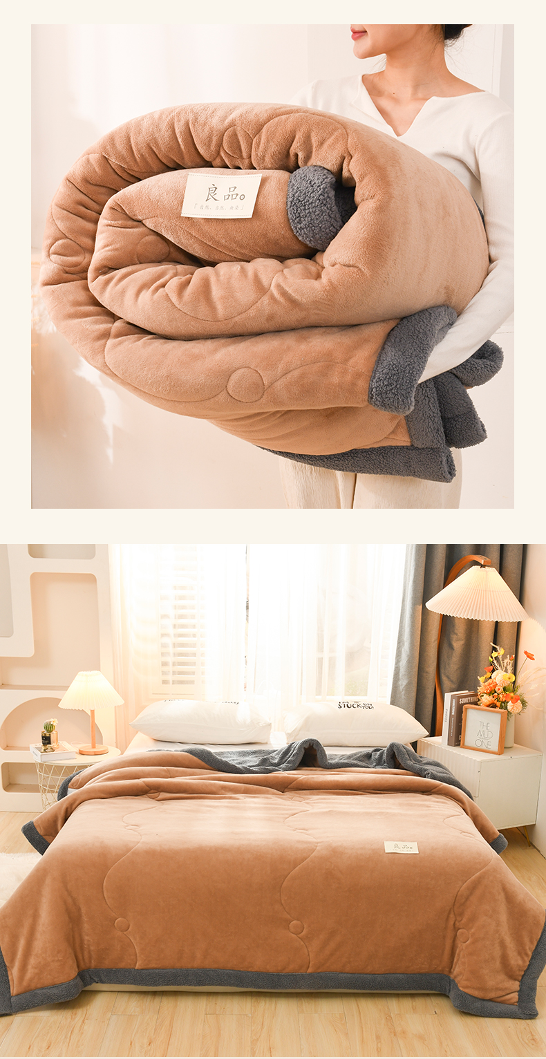 恋绒家纺 2025新款三层牛奶绒夹棉毛毯复合盖毯直播外贸毯子 咖啡色