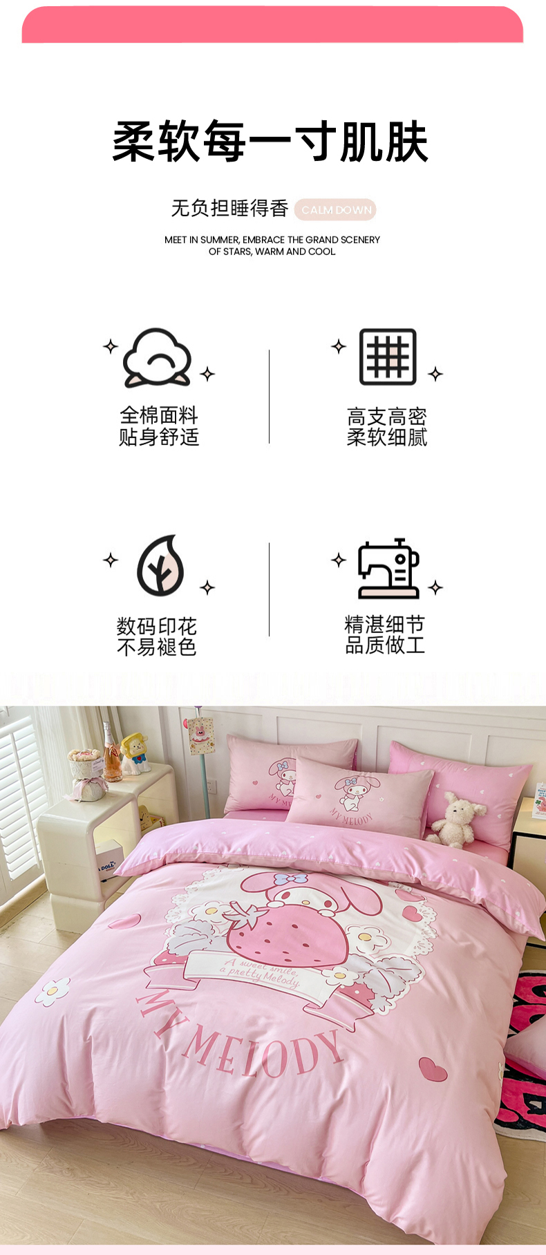 当前位置: 91家纺网 > 商品网购 > 床品套件 > 四件套 > 全棉普通四件套 > 玉元坊 2025新款正版授权三丽鸥系列全棉纯棉三四件套 基础款 粉兔草莓-基础款