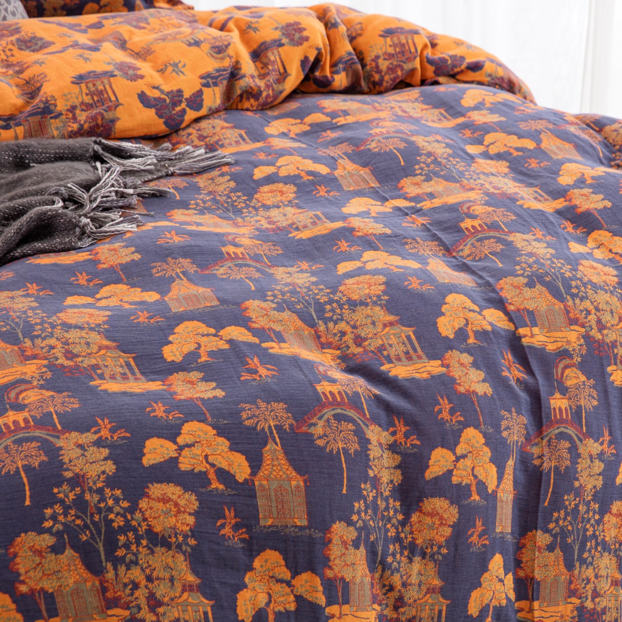 (总)仰望棉麻双层纱供应链 2026新款全棉色织提花四件套-太妃糖,太妃糖