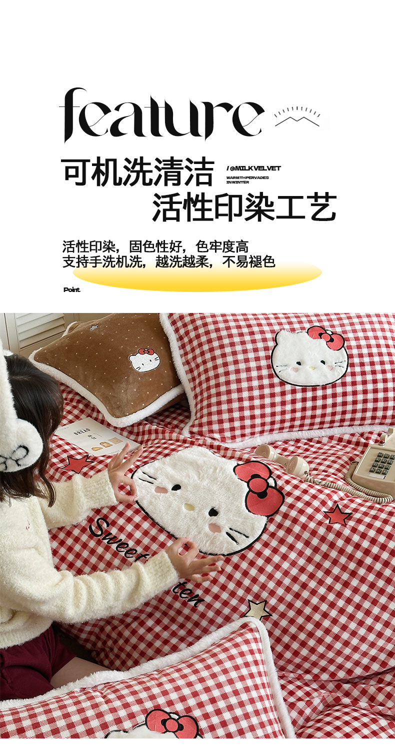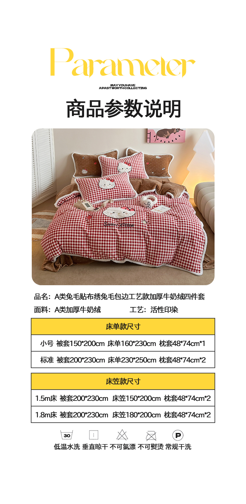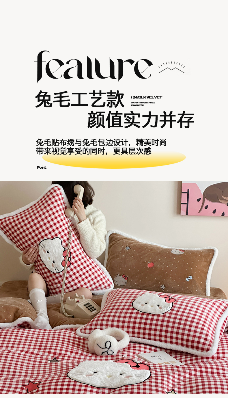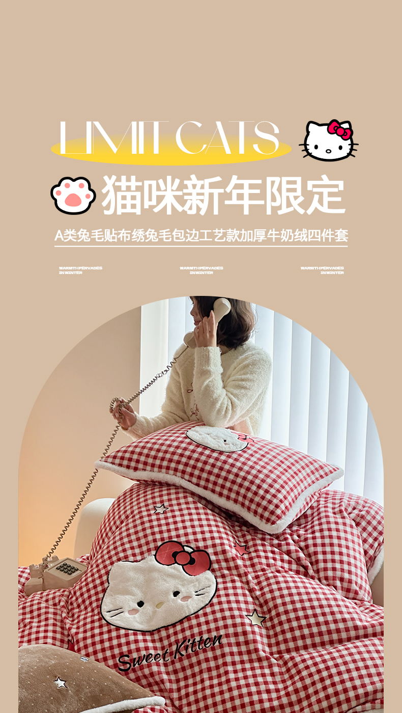 当前位置: 91家纺网 > 商品网购 > 床品套件 > 四件套 > 牛奶绒四件套 > 桃子家居 2026新款A类新年限定兔毛贴布绣猫咪可爱公主兔毛包边工艺款加厚牛奶绒四件套 绒贴布绣-喵喵公主咖