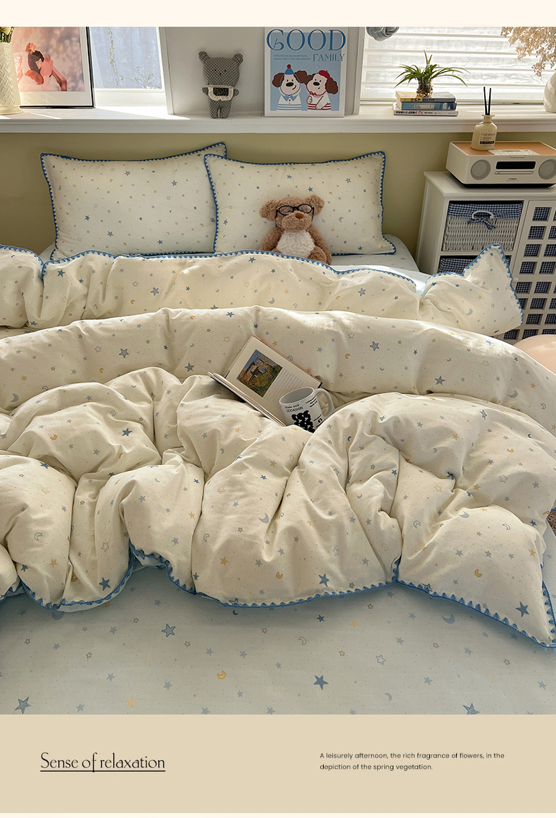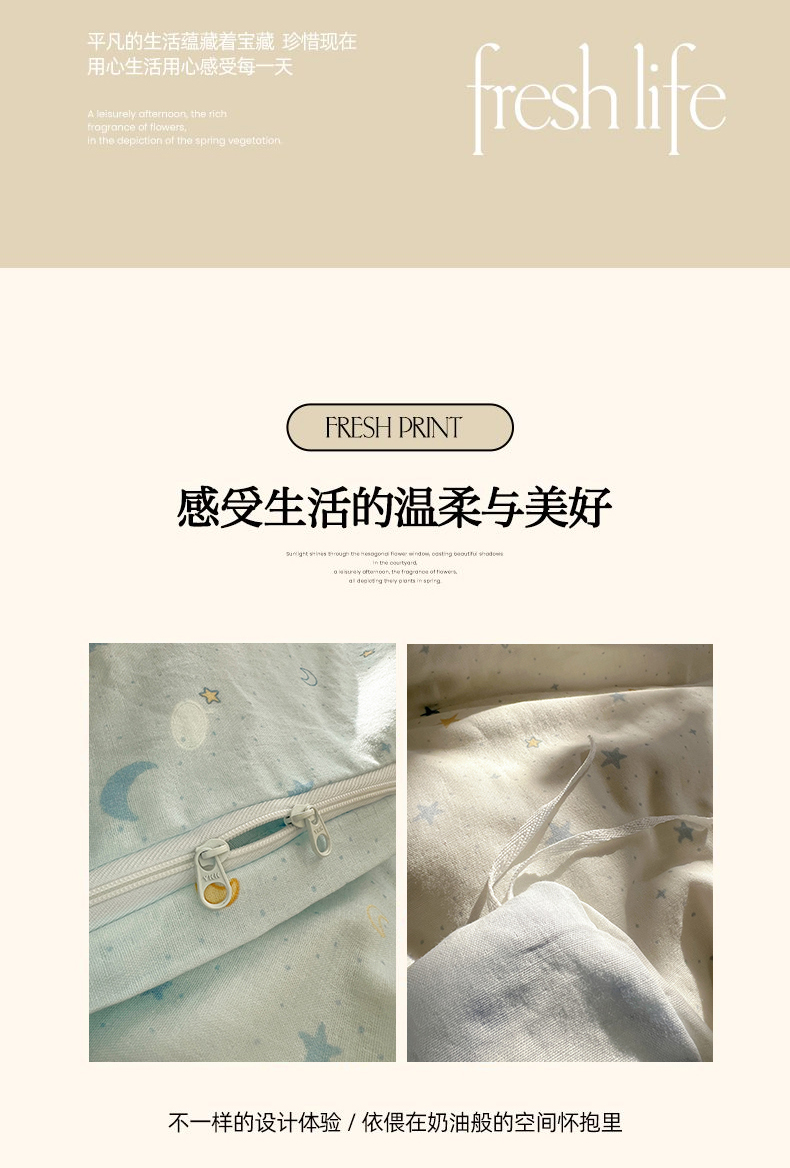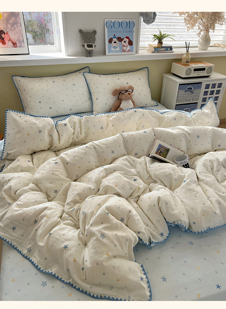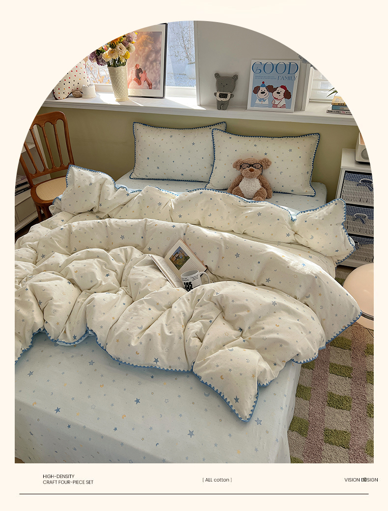 商品名称:典曼家纺 2026新款全棉纯棉有氧双层纱贝壳边四件套 贝壳边星月