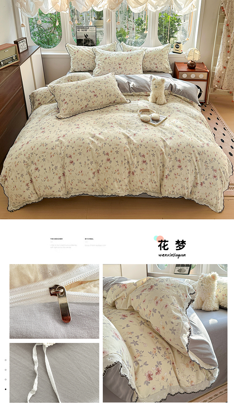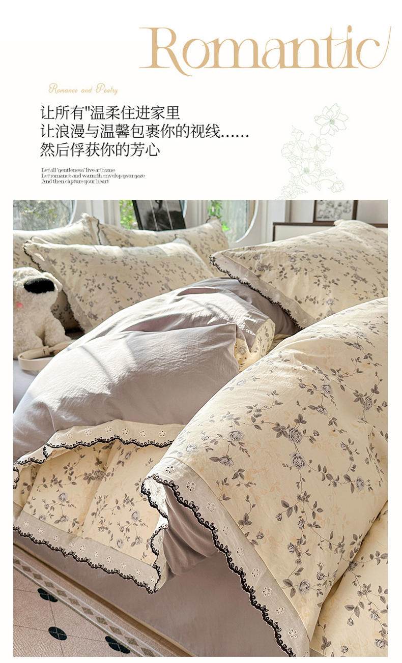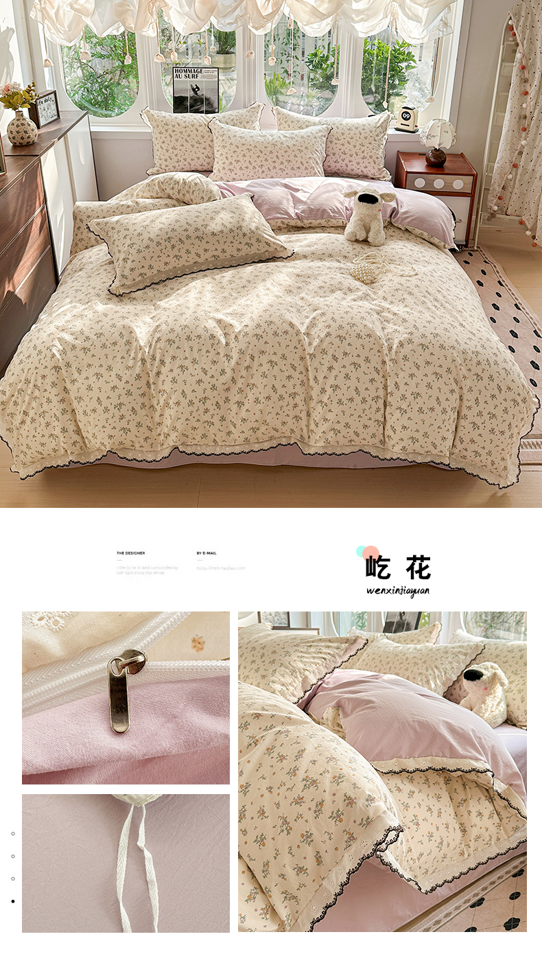 当前位置: 91家纺网 > 商品网购 > 床品套件 > 四件套 > 水洗棉四件套 > 芯贝儿 2026新款A类仿棉古法水洗棉复古法式花边四件套(提供买家秀) 锦上花开
