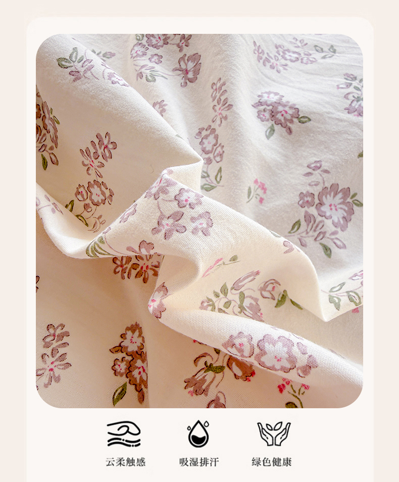 商品名称:芯贝儿 2026新款古法小清新全棉花边仿棉水洗棉法式四件套件被套床单 花田故事