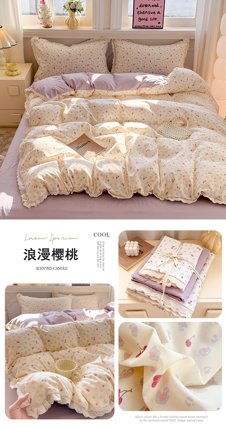 (总)芯贝儿 2026新款古法小清新全棉花边仿棉水洗棉法式四件套件被套床单,陌言,草莓熊,浪漫樱桃,卡吉米,班尼狗,花絮,花田故事,半糖悠然,漫步花从,午后花园,夏日初恋,小伙伴,小木马,星宝,郁金香,云瑶,KT猫