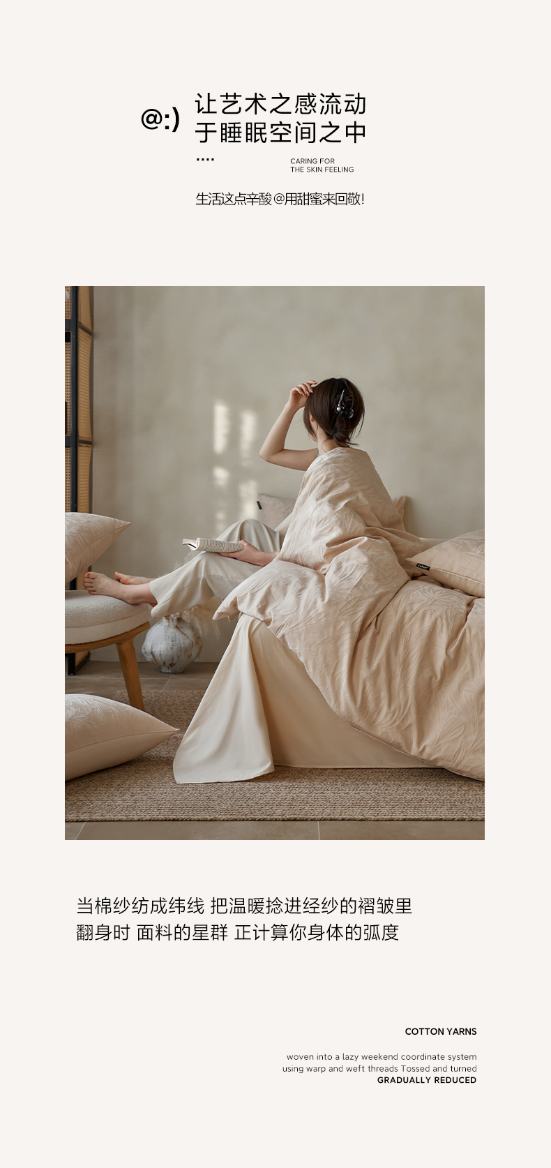 商品名称:小懒猪 2026新款亲肤舒适立体全棉提花四件套 秘境-米杏