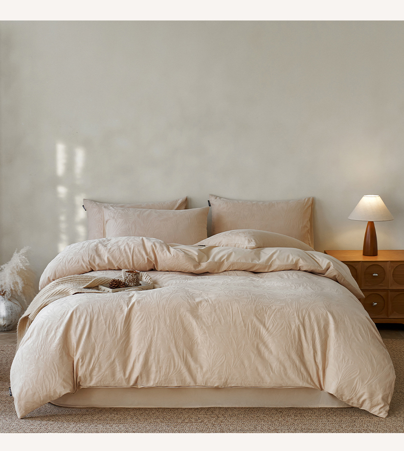 (总)小懒猪 2026新款亲肤舒适立体全棉纯棉提花四件套-系列三,布兰卡-金属灰,布兰卡-米杏,布兰卡-银灰,伊贝卡-米杏,伊贝卡-奶昔白,伊贝卡-银灰