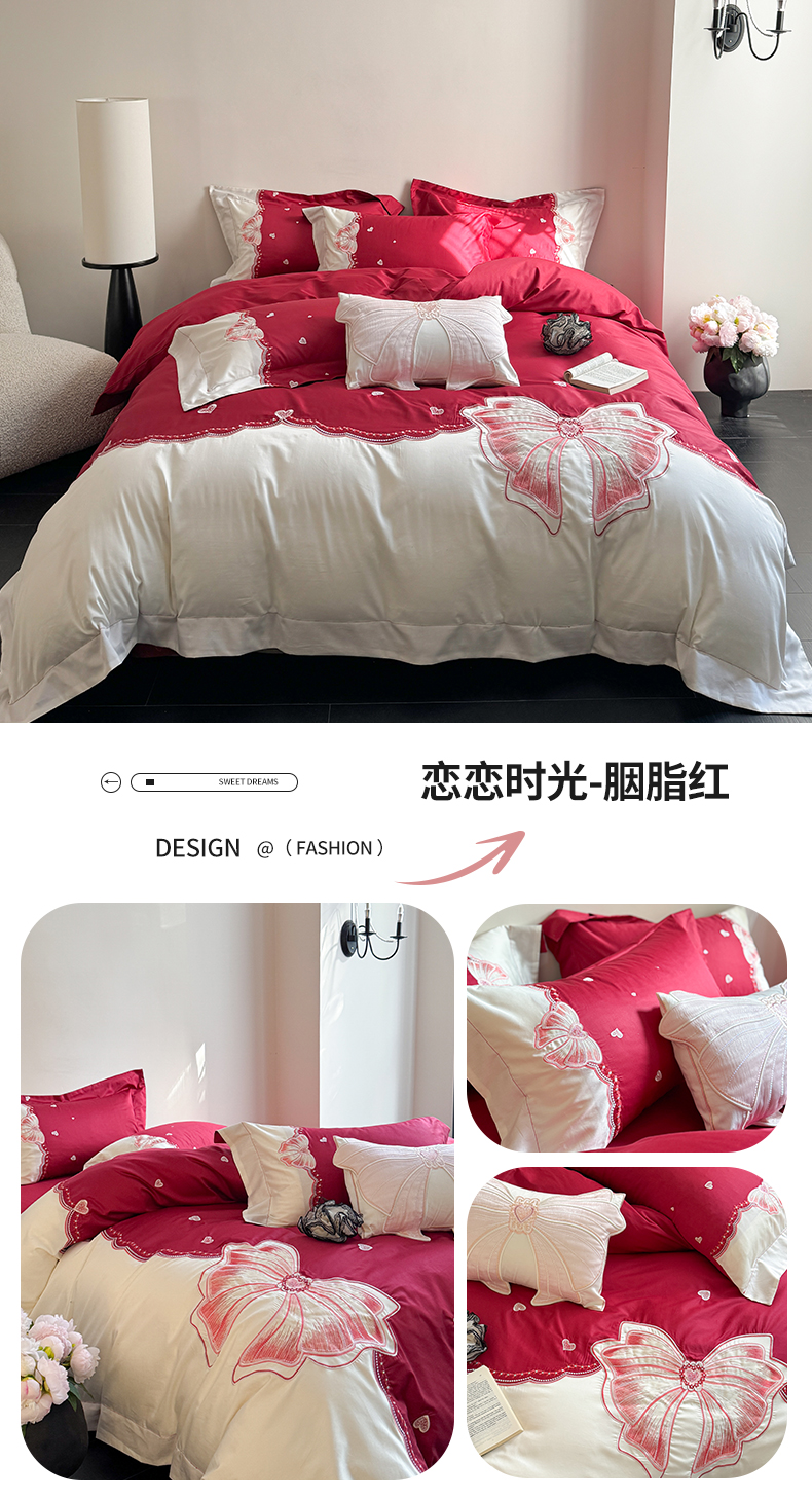 (总)东方合美(原:皇家传奇) 2026新款纯棉长绒棉刺绣四件套-恋恋时光,恋恋时光-仙女粉,恋恋时光-胭脂红,恋恋时光-云天蓝