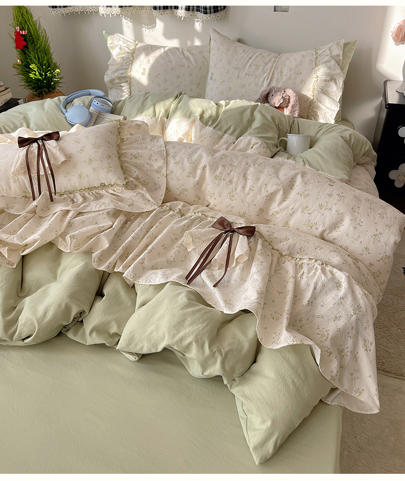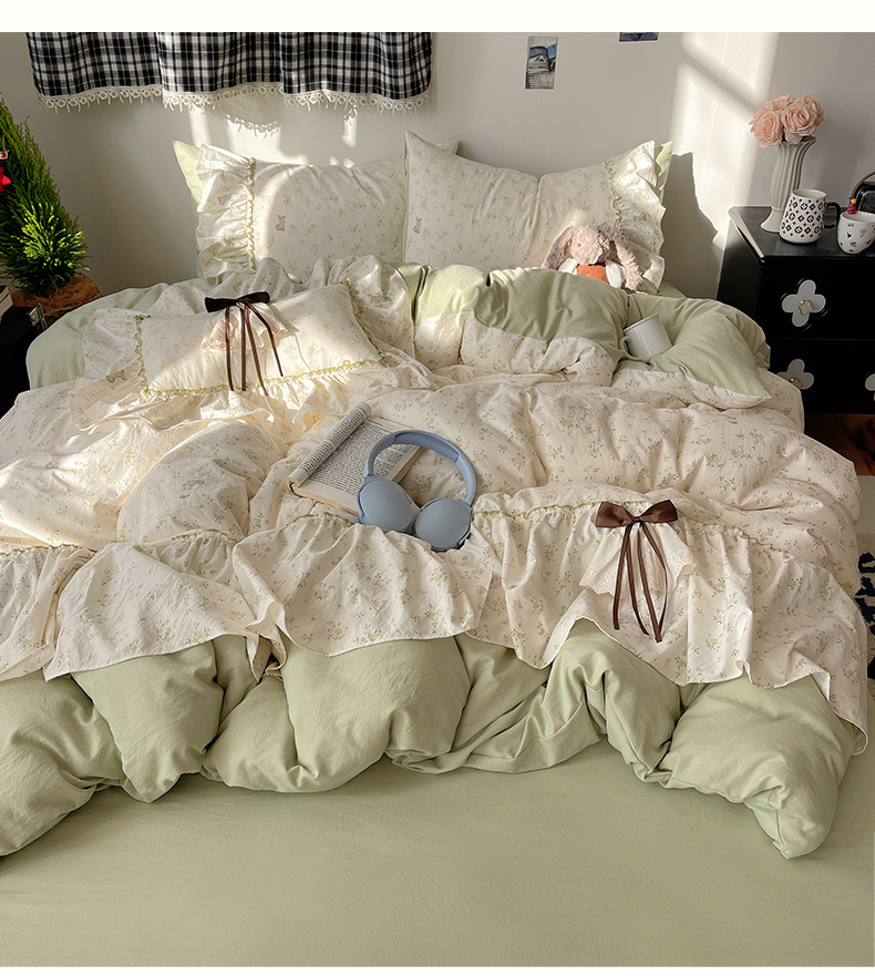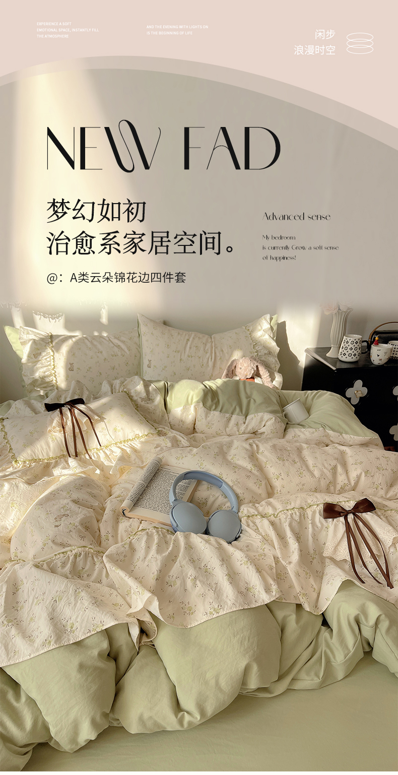 当前位置: 91家纺网 > 商品网购 > 床品套件 > 四件套 > 其它四件套 > 娜娜 2026新款A类云朵锦花边四件套 小雏菊-浅绿