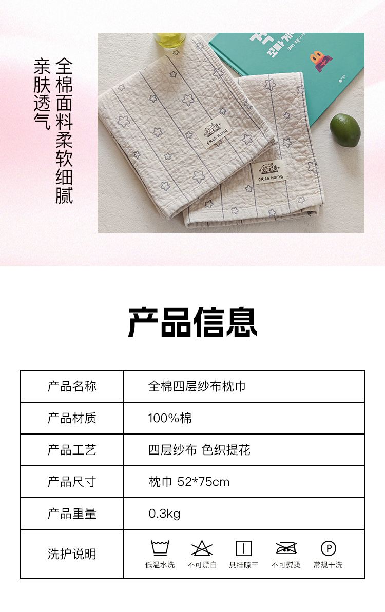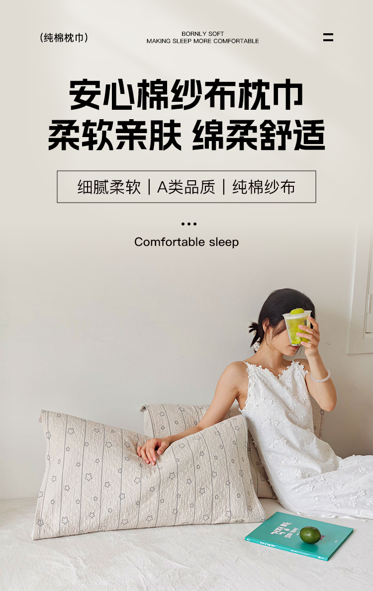 商品名称:沐瑟家纺 2026新款安心棉纯棉纱布枕巾 梦曦语
