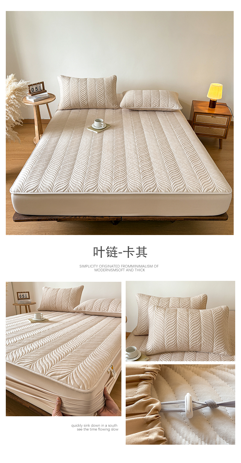 居眠 2026新款叶链夹棉防水床笠 叶链-雾蓝