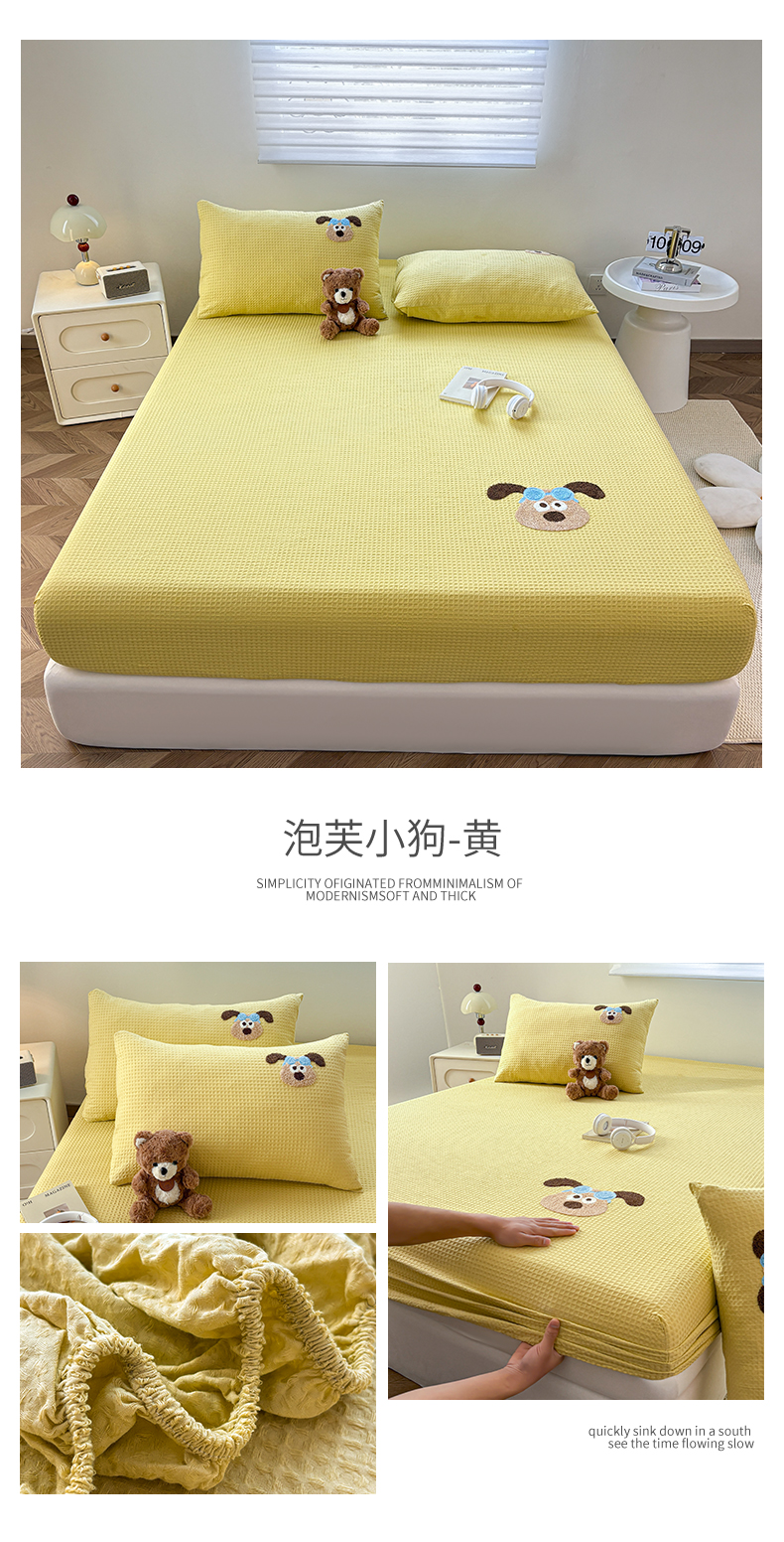商品名称:居眠 2026新款全棉华夫格毛巾绣系列床笠 泡芙小狗-黄