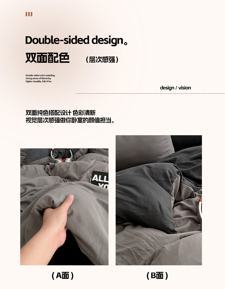 商品名称:(总)卡斯诺家纺馆 2026新款水洗棉纯色双拼四件套(下载文件包含买家秀)