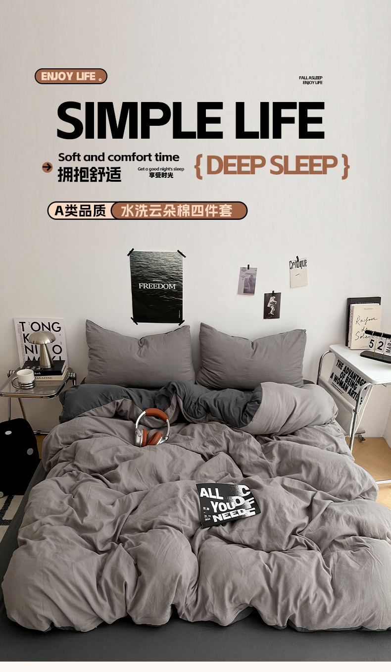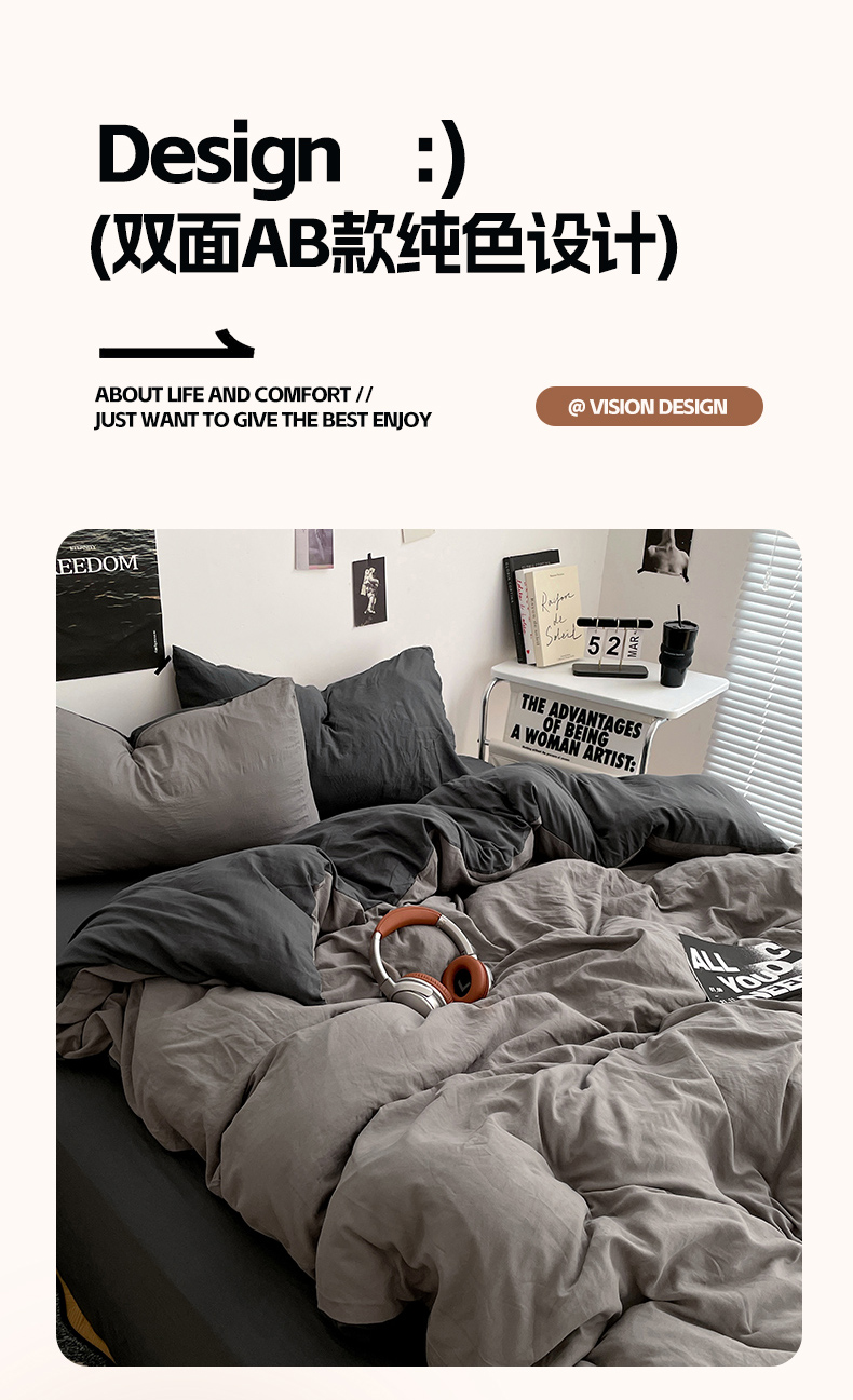 (总)卡斯诺家纺馆 2026新款水洗棉纯色双拼四件套(下载文件包含买家秀)