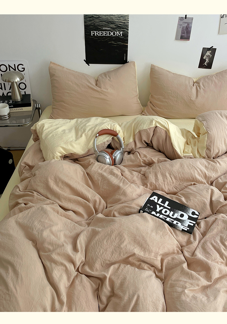当前位置: 91家纺网 > 商品网购 > 床品套件 > 四件套 > 化纤普通四件套 > 卡斯诺家纺馆 2026新款水洗棉纯色双拼四件套(下载文件包含买家秀) 奶黄深咖