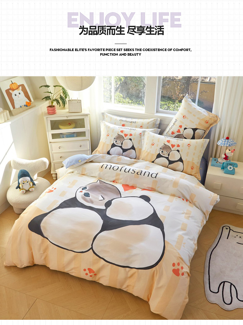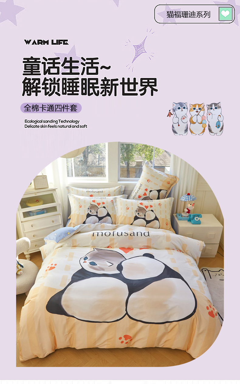 当前位置: 91家纺网 > 商品网购 > 床品套件 > 四件套 > 全棉普通四件套 > 蘭菲家纺 2026新款全棉大版鲨鱼猫套件-猫福系列四件套 珊迪熊-猫福系列