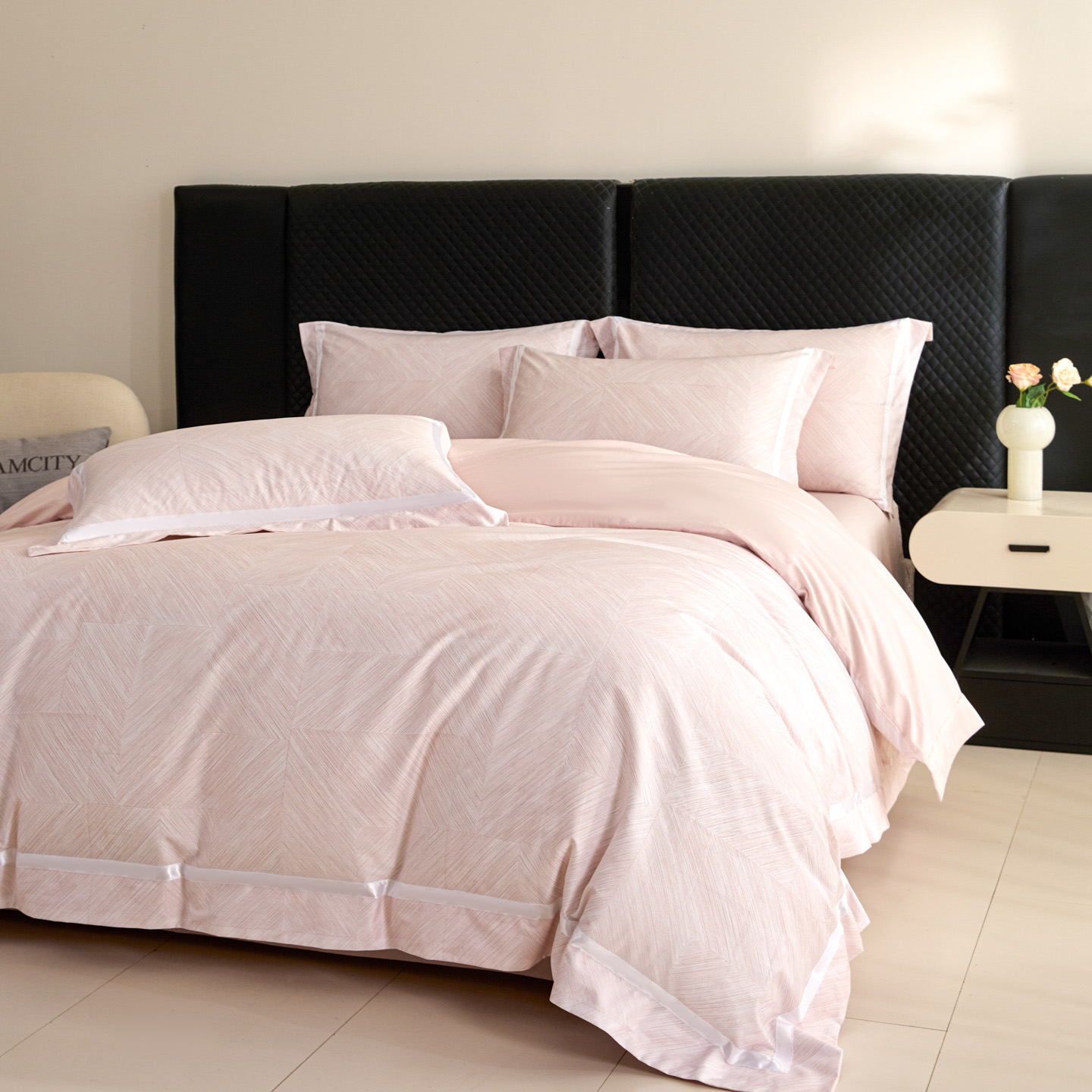 商品名称:新方向 2026新款数码印花50s双股全棉贡缎长绒棉四件套-星河(严格控价 标准328元 加大348元) 星河-蔷薇粉
