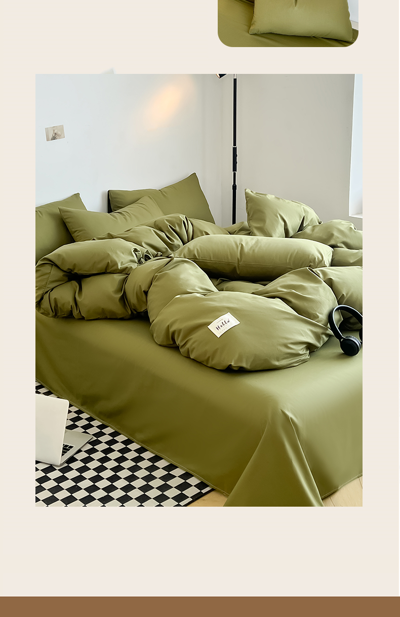 • 91家纺网 家纺一手货源 找家纺 友承家纺 2026新款四件套磨毛床单被套被罩简约纯色学生宿舍水洗棉3三件套床上用品4被套单件四季单独被罩 军绿