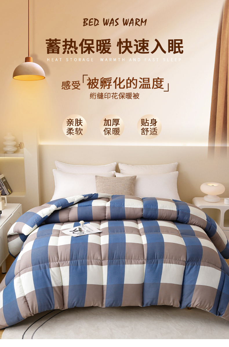 • 91家纺网 家纺一手货源 找家纺 友承家纺 2026新款床上用品加厚保暖冬被棉被春秋被褥被芯学生单人宿舍羽丝棉被水洗棉垫被 兰大格