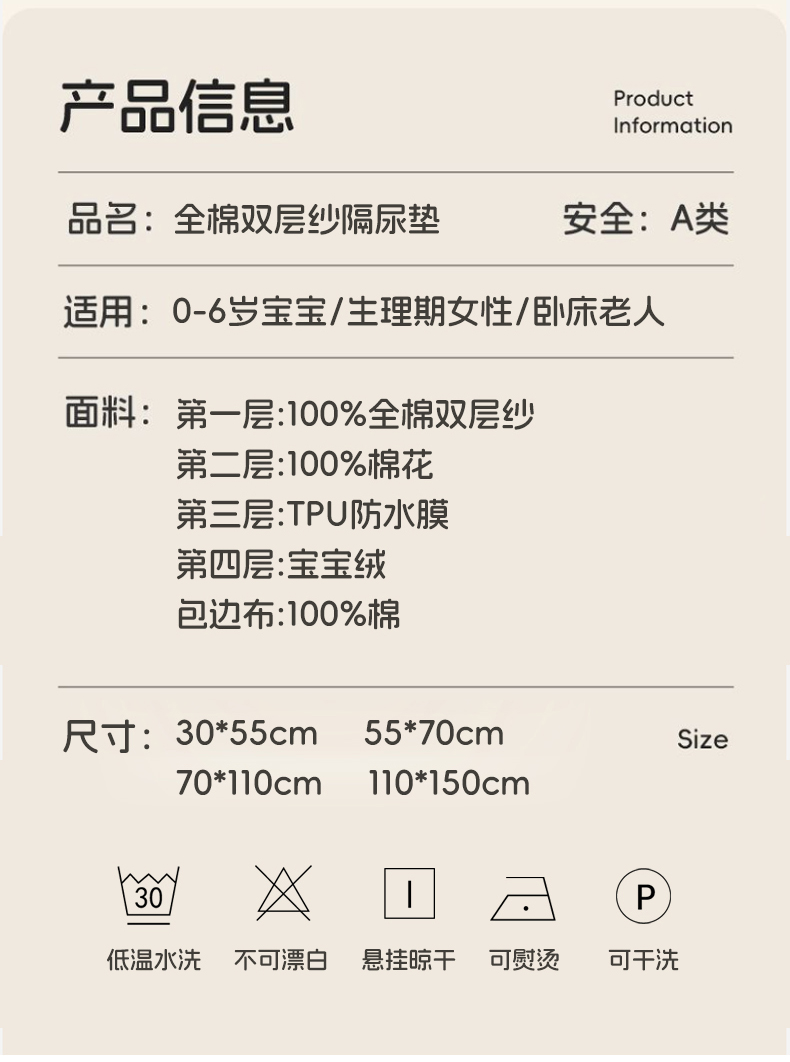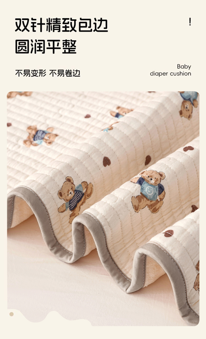 商品名称:永旺家纺 2026新款四季可用A面全棉B面宝宝绒全棉纯棉双层纱防水隔尿垫垫子系列 童趣(粉)