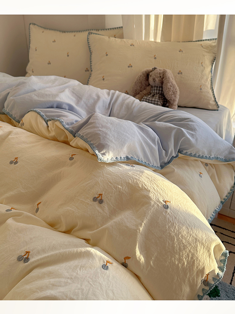 当前位置: 91家纺网 > 商品网购 > 床品套件 > 四件套 > 其它四件套 > 顾里家纺 2026新款ins韩风刺绣云朵棉四件套 蓝樱桃