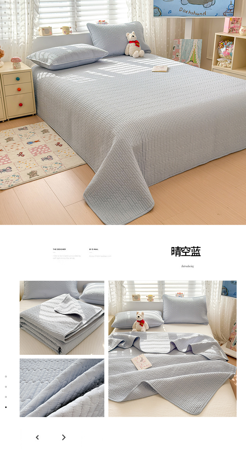 当前位置: 91家纺网 > 商品网购 > 床上用品 > 床盖 > 雅萱家纺 2026新款双面全棉高温砂洗床盖系列 晴空蓝