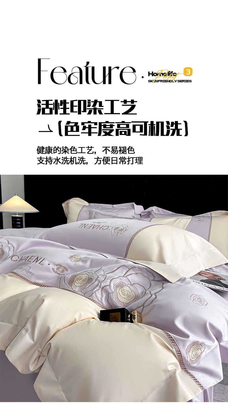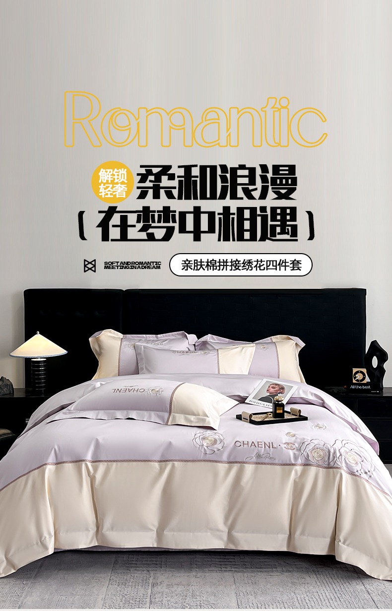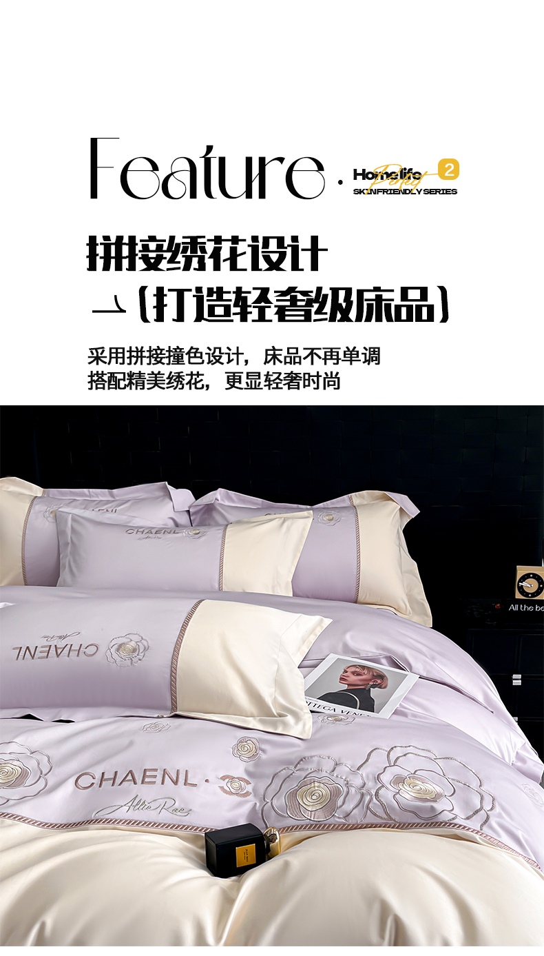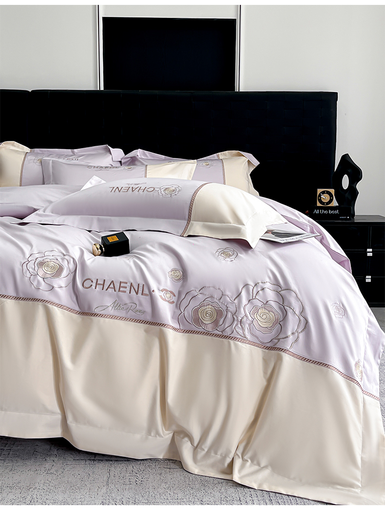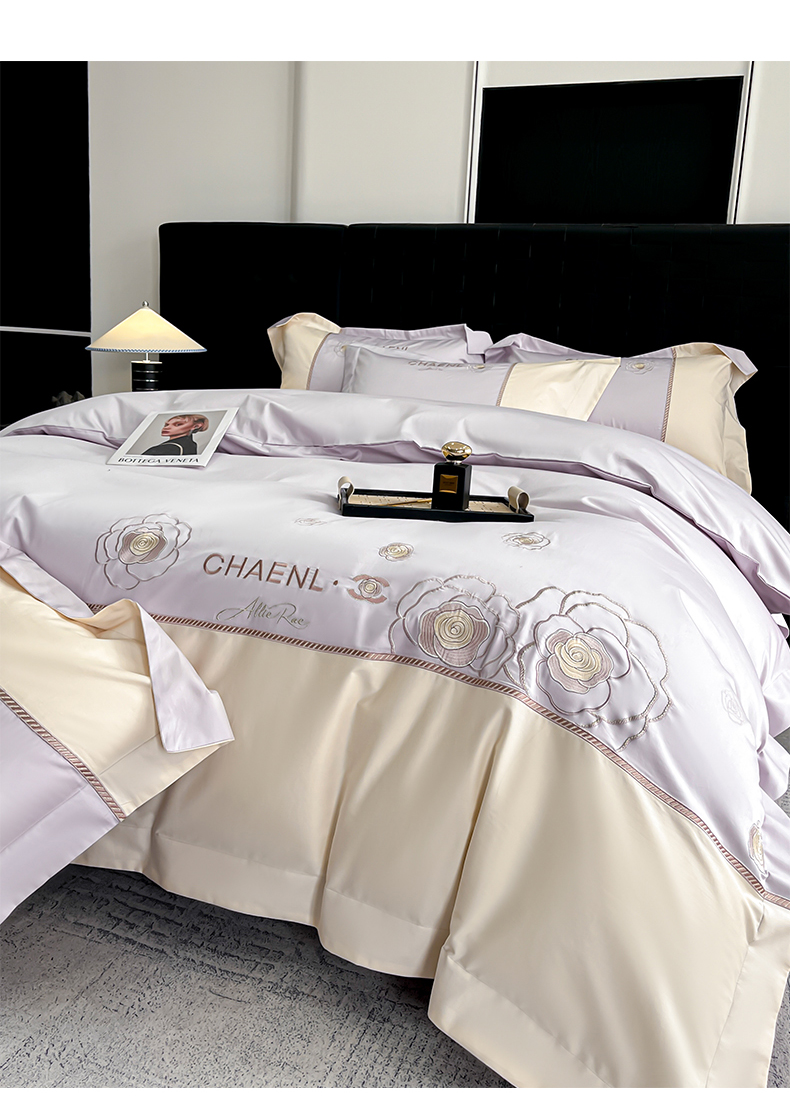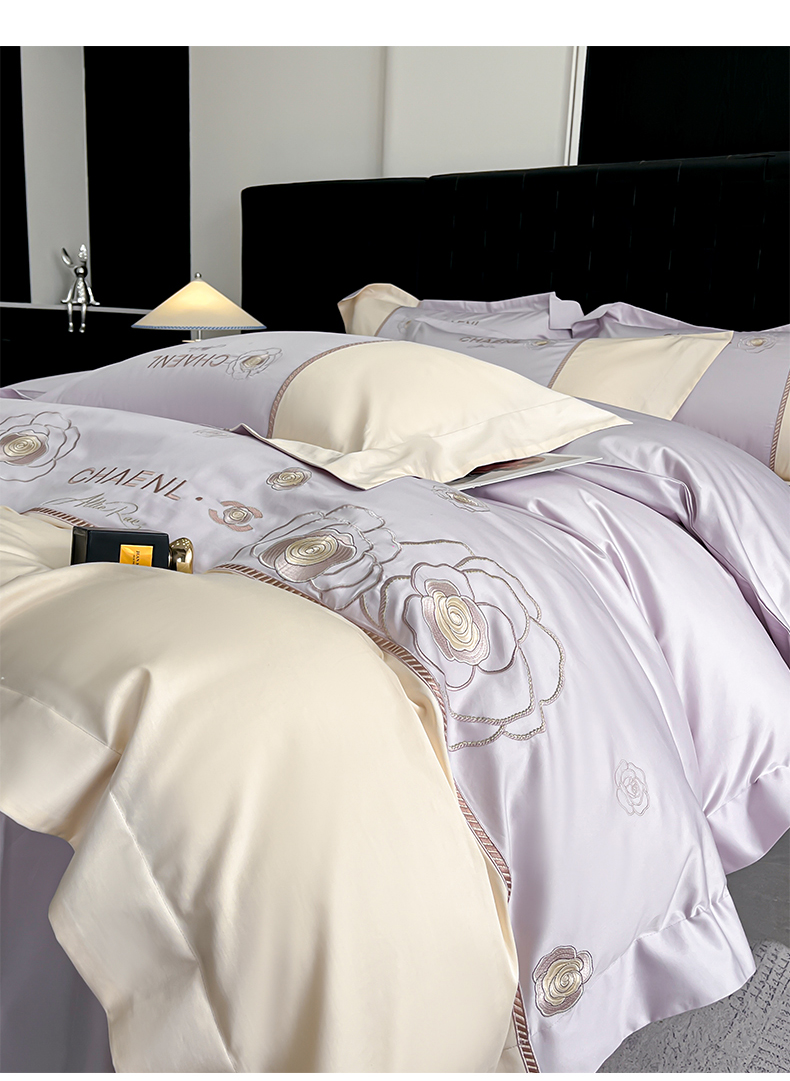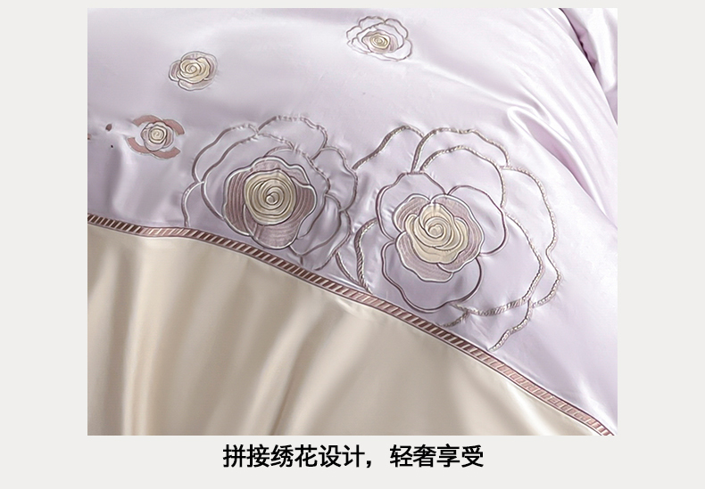 当前位置: 91家纺网 > 商品网购 > 床品套件 > 四件套 > 其它四件套 > 置顶家纺 2026新款春夏山茶花亲肤拼接刺绣四件套 山茶花-香芋紫