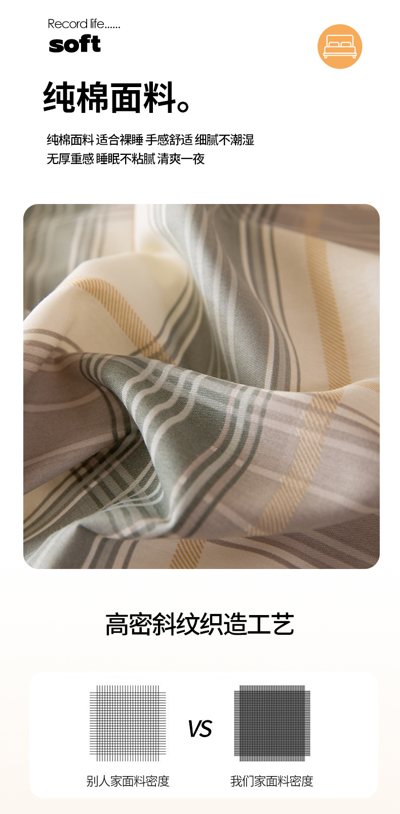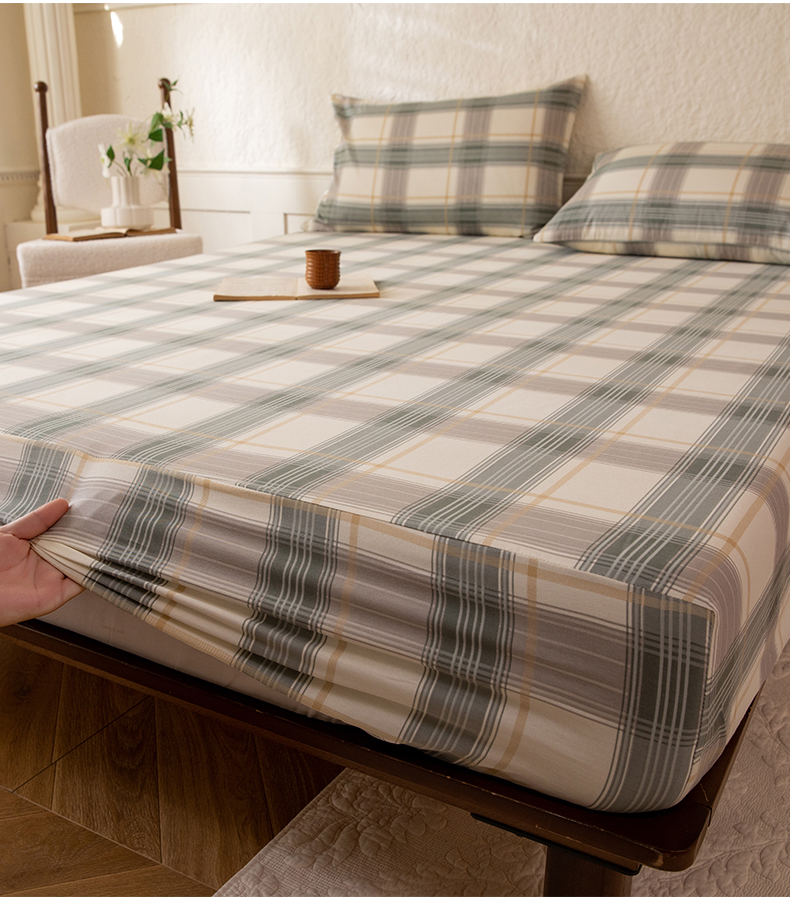 商品名称:八十八家纺 2026新款无印风全棉纯棉斜纹条格单床笠床笠单件单品床笠 山竹