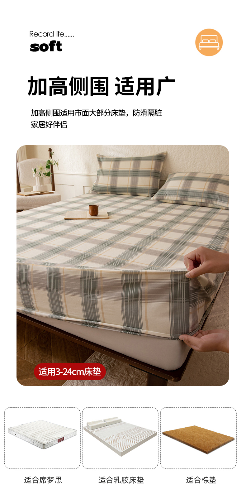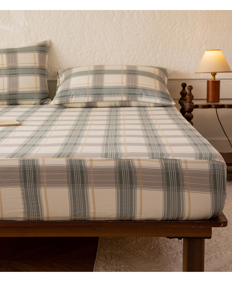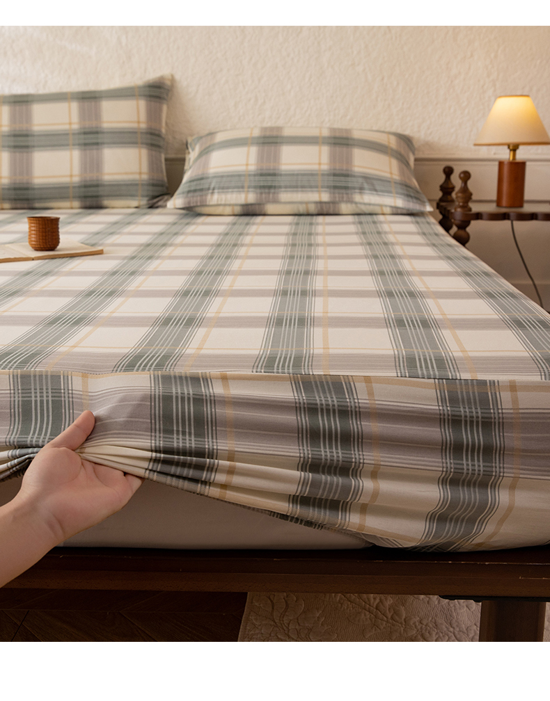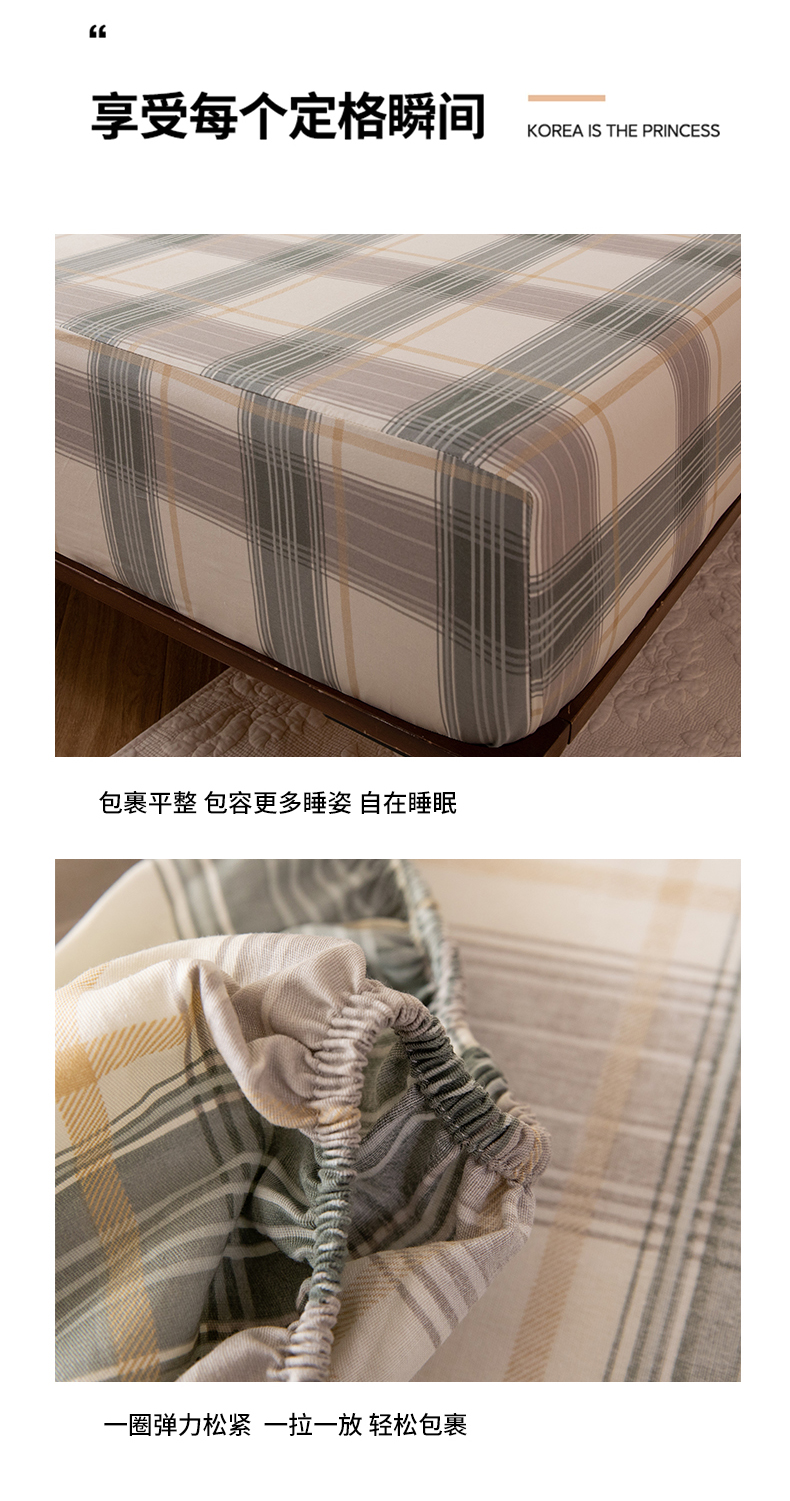 八十八家纺 2026新款无印风全棉纯棉斜纹条格单床笠床笠单件单品床笠 山竹