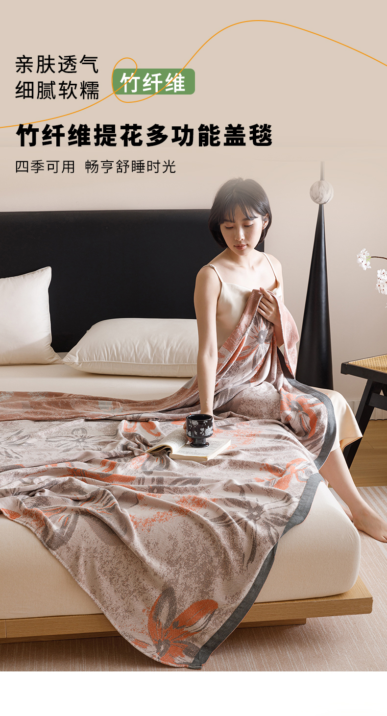 商品名称:朴尔家纺-毛巾被 2026新款柔滑竹纤维双层纱布冷感毯毛巾被 扶摇-灰