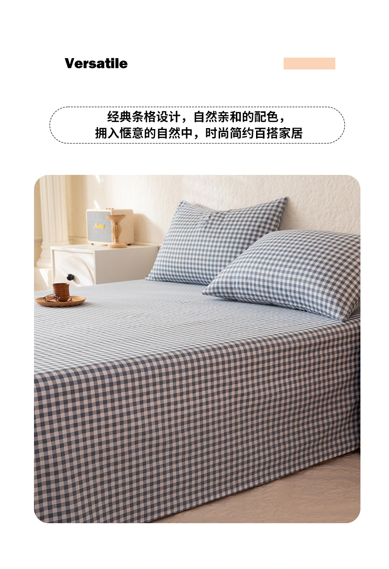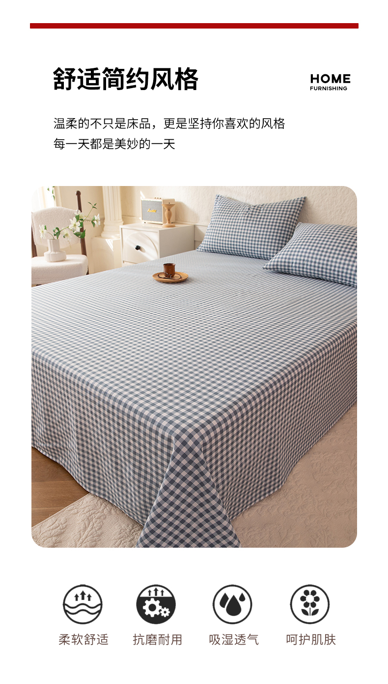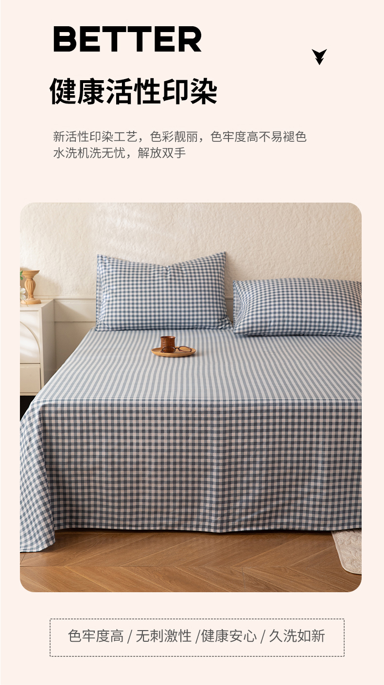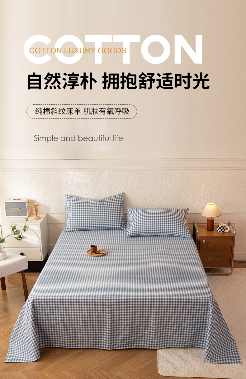 商品名称:八十八家纺 2026新款无印风全棉纯棉斜纹条格单床单床单单件单品床单 青田