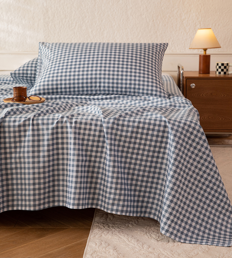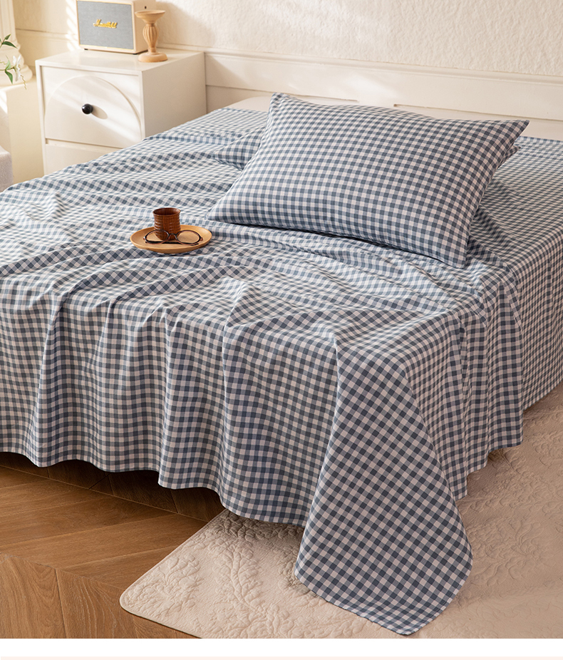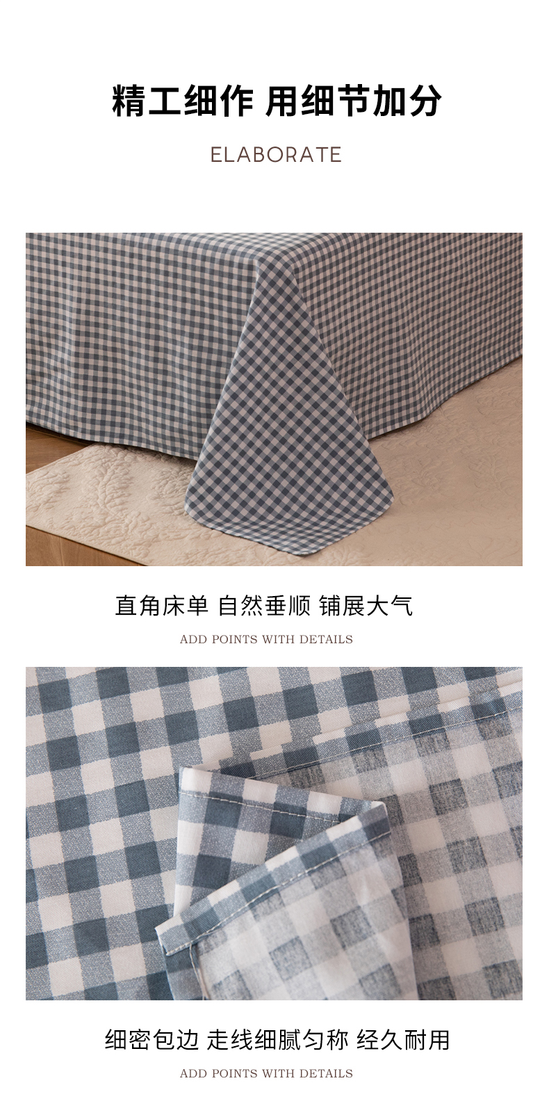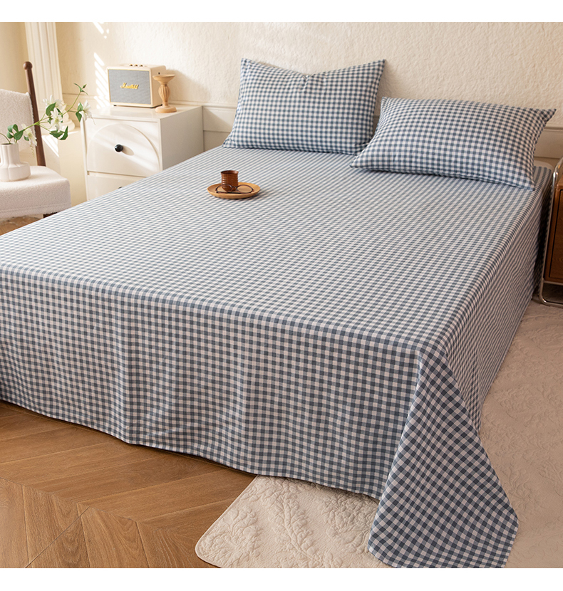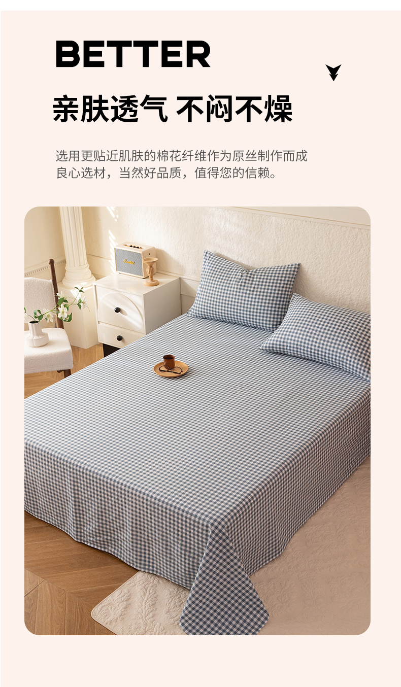 八十八家纺 2026新款无印风全棉纯棉斜纹条格单床单床单单件单品床单 青田