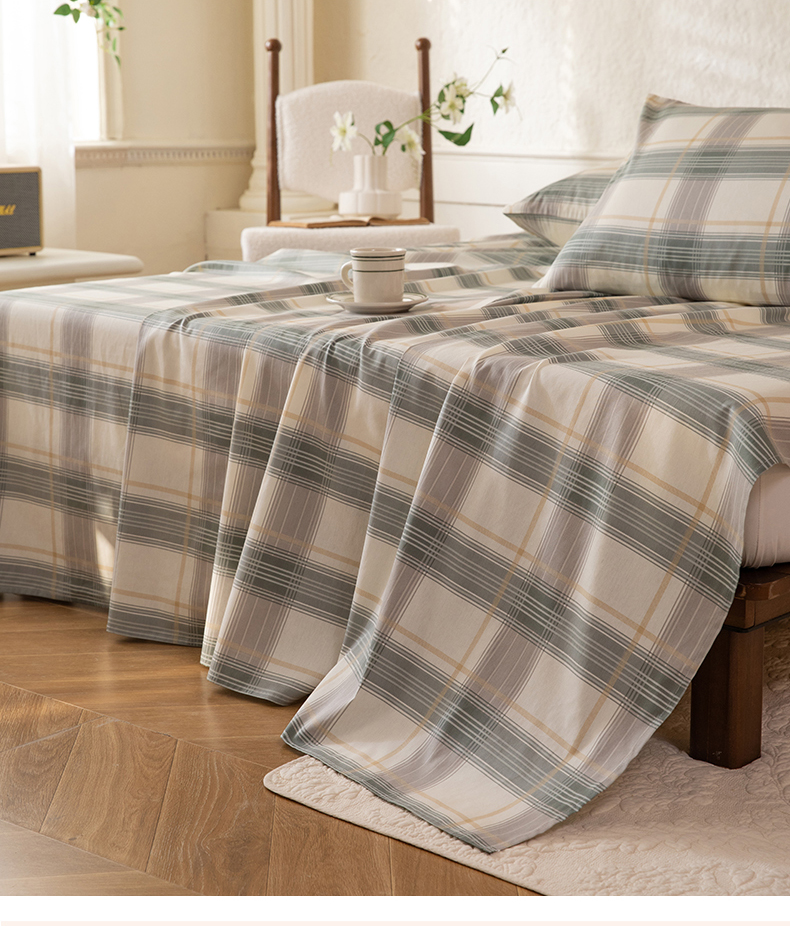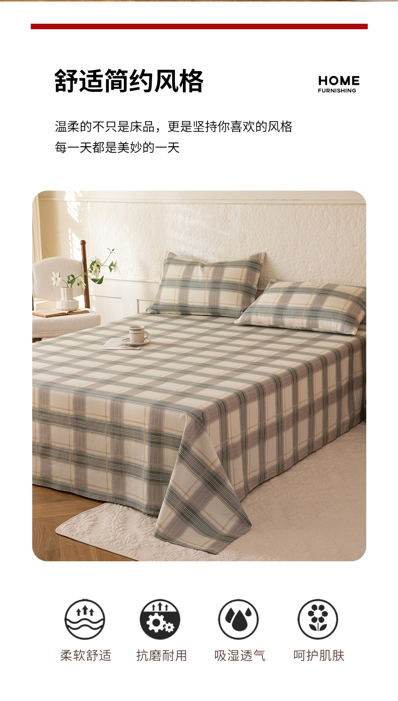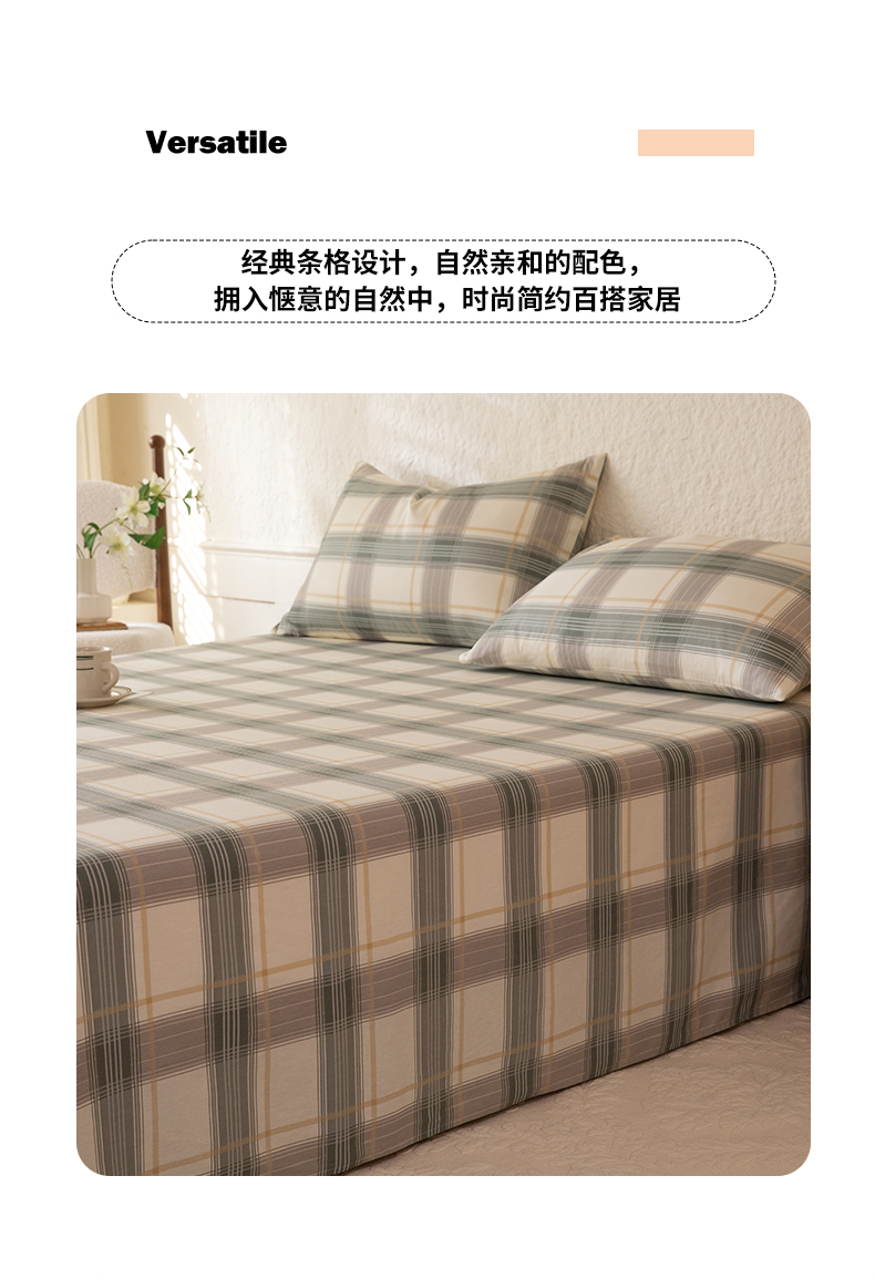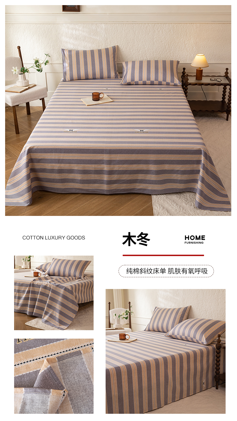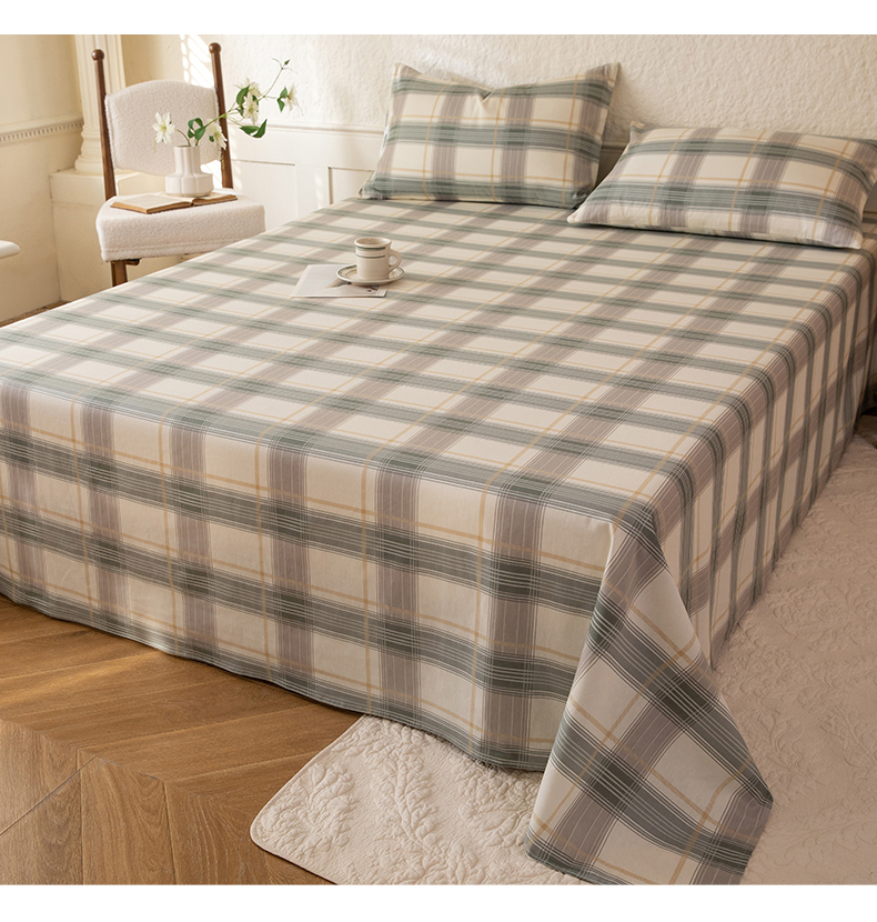 八十八家纺 2026新款无印风全棉纯棉斜纹条格单床单床单单件单品床单 山竹