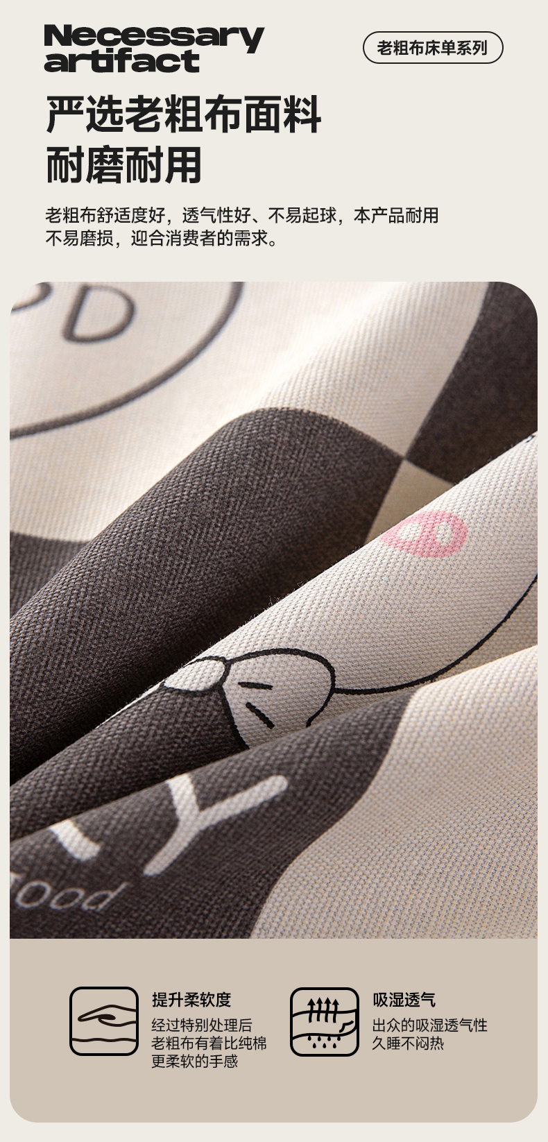 • 91家纺网 家纺一手货源 找家纺 首爱家纺 2026新款原棉标印花老粗布床单 小时光