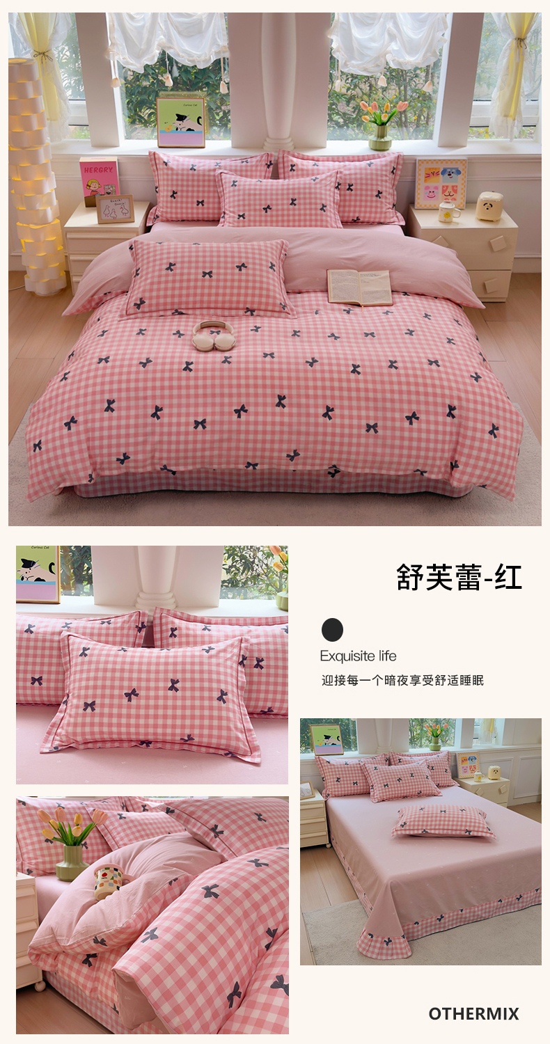 当前位置: 91家纺网 > 商品网购 > 床品套件 > 四件套 > 全棉普通四件套 > 铭博家纺 2026新款100%全棉纯棉四件套第一批 舒芙蕾-红