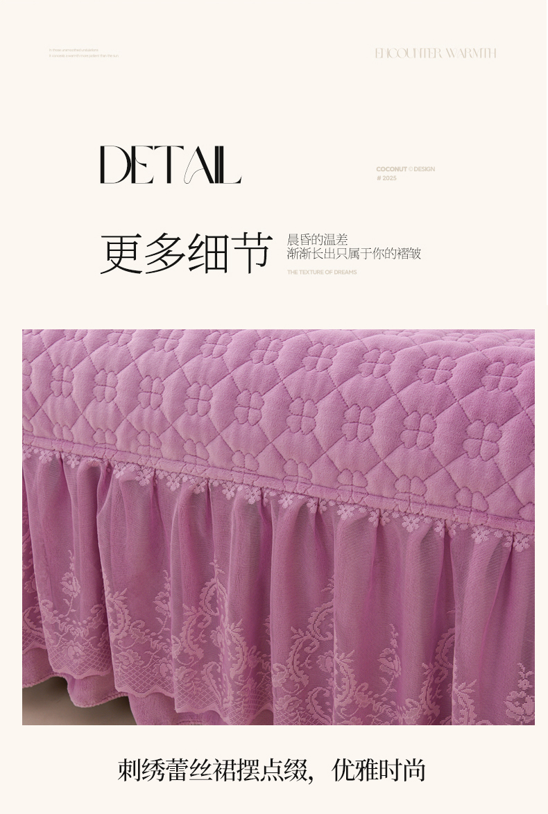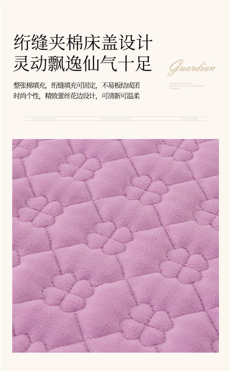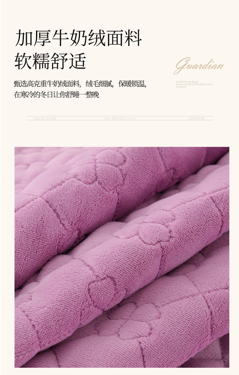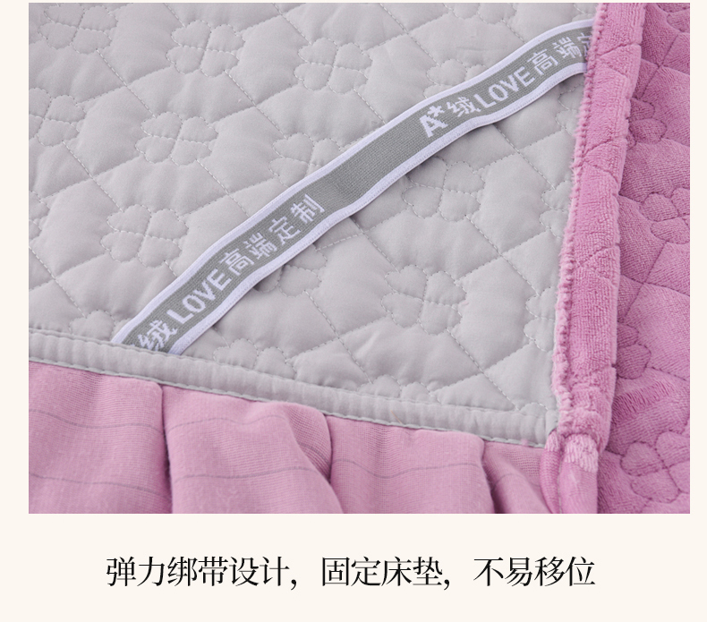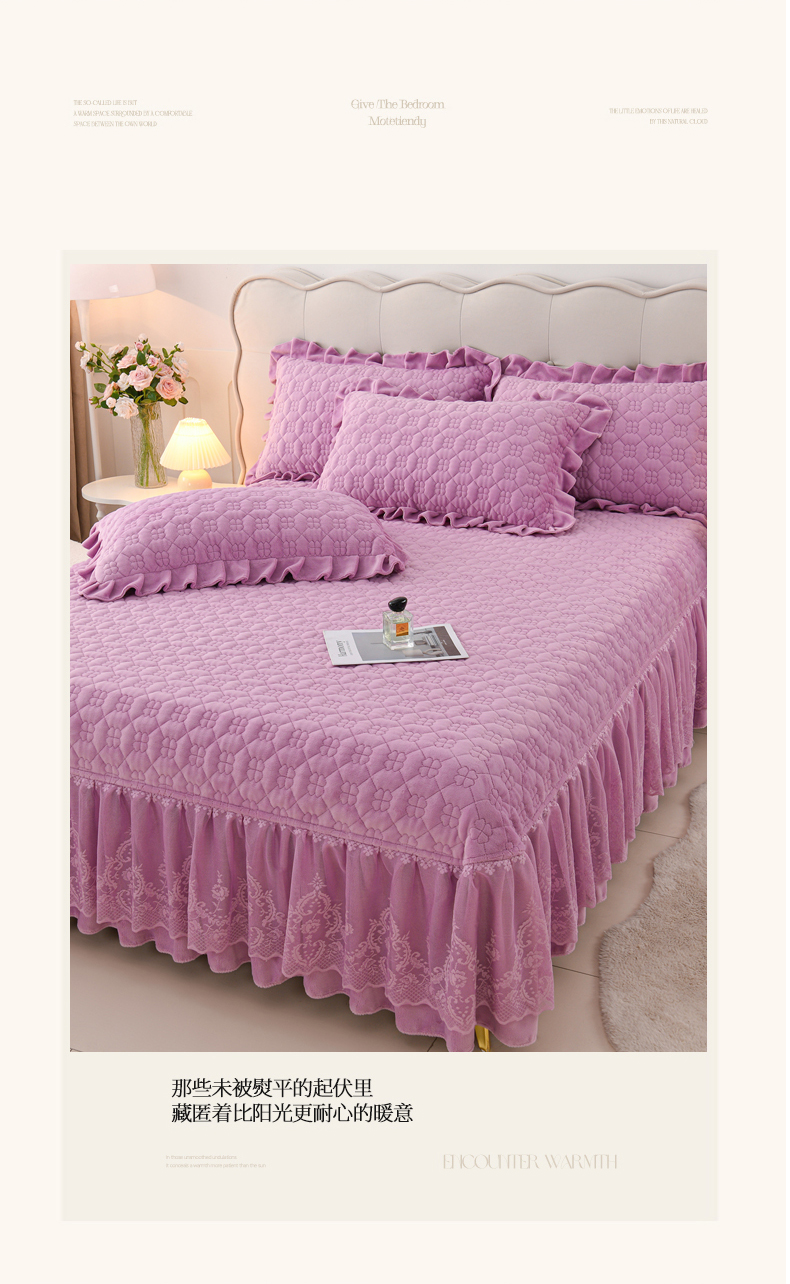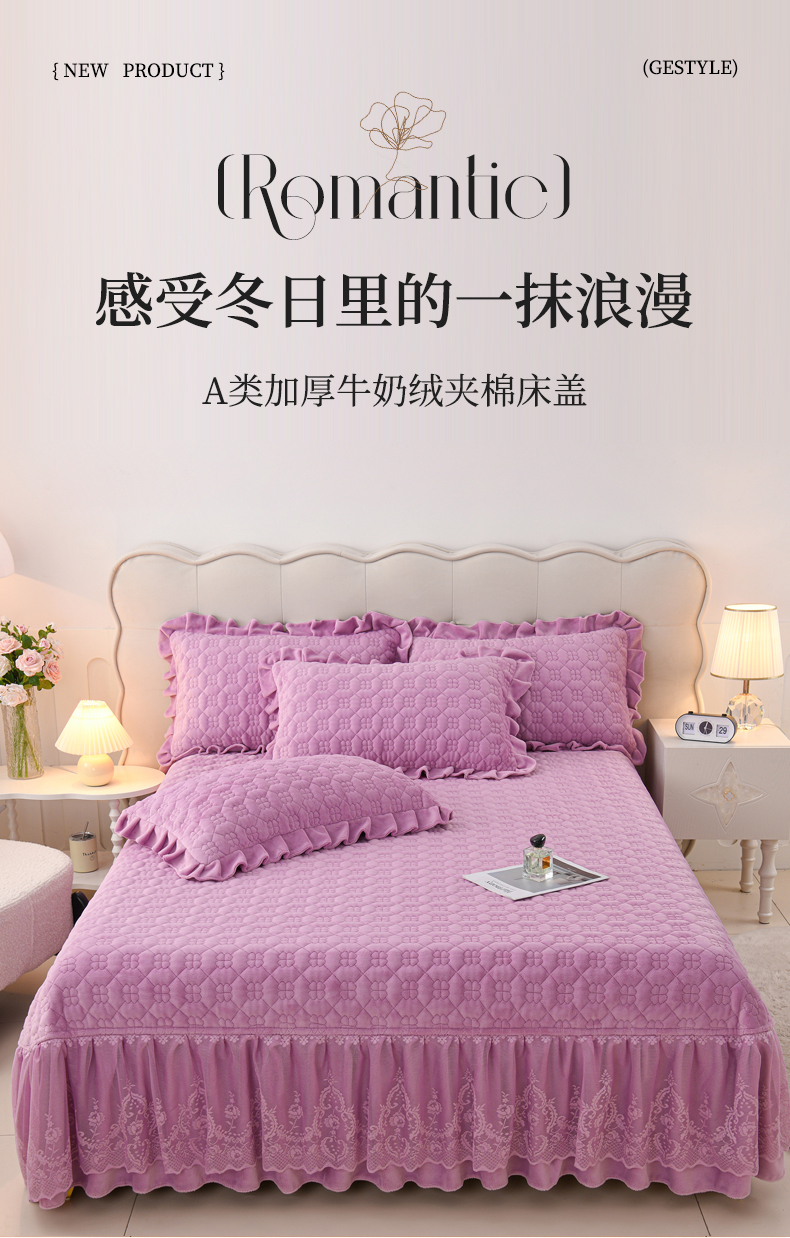 商品名称:优家居工厂店 2026新款240克高克重牛奶绒韩版牛奶绒夹棉床盖三件套床裙三件套直播热款-栀子花 栀子花-紫色
