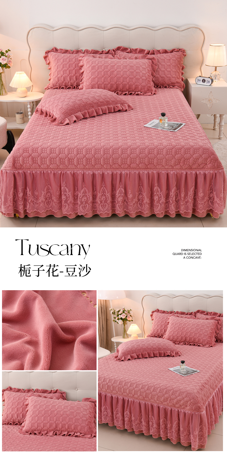 (总)优家居工厂店 2026新款高克重240克雕花烂花夹棉床盖四件套床单四件套牛奶绒床裙四件套,朱丽叶-粉,朱丽叶-灰,朱丽叶-绿,朱丽叶-紫