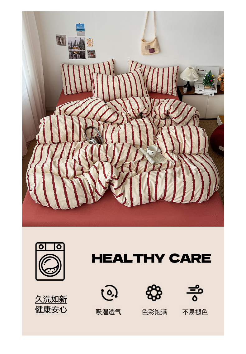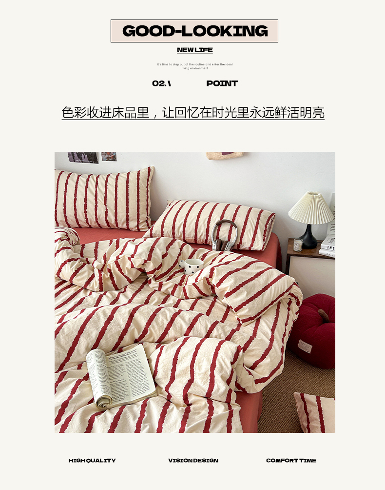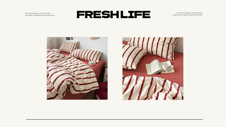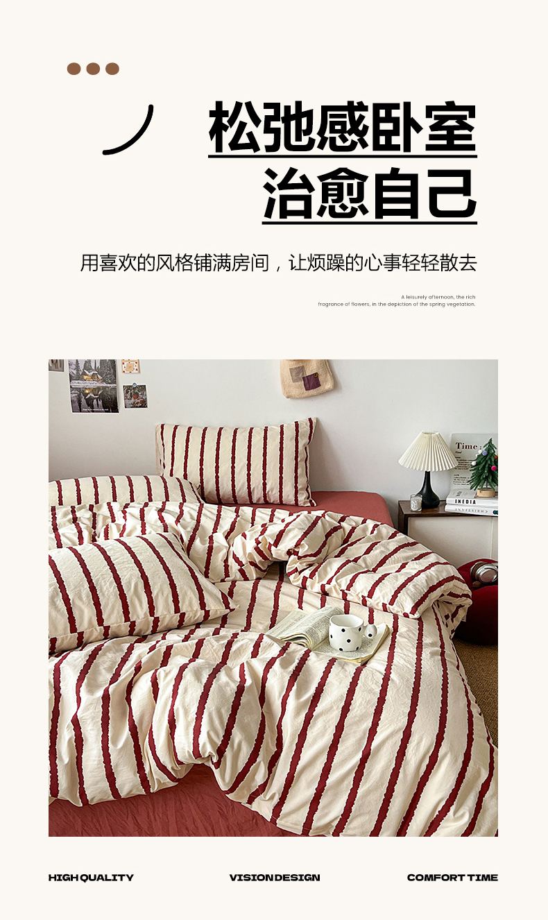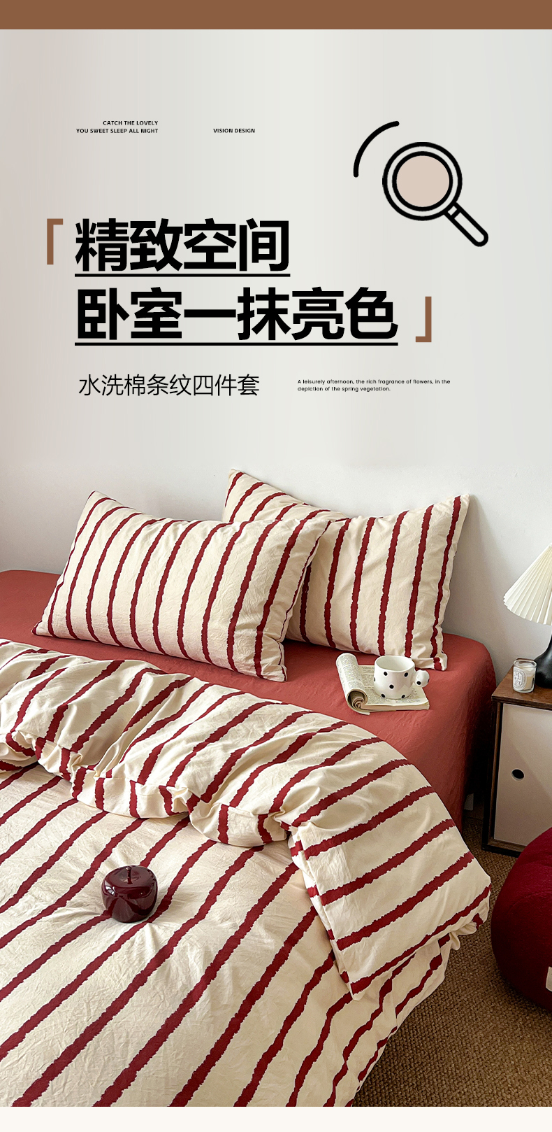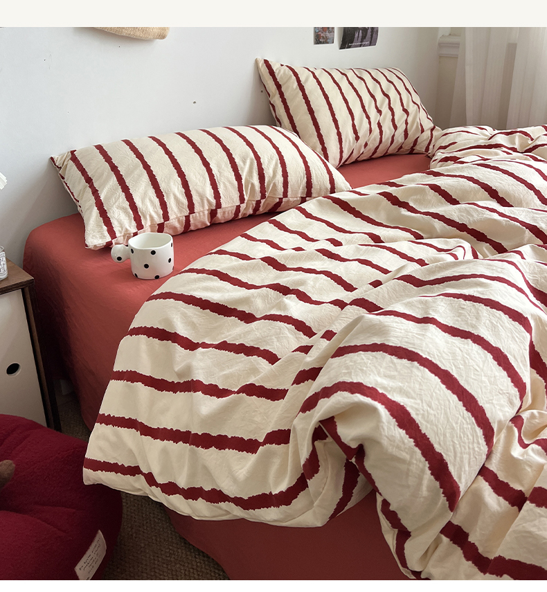 当前位置: 91家纺网 > 商品网购 > 床品套件 > 四件套 > 水洗棉四件套 > 逸林家纺《原希尔顿逸林》 2026新款春款简约印花古法水洗棉四件套拼色床单款床笠款四件套条纹被套单品四件套 墨染-红