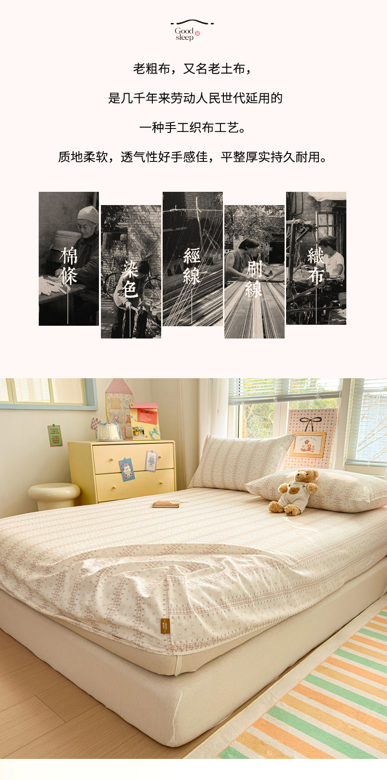 女子家纺 2026新款全棉老粗布床笠 幻彩