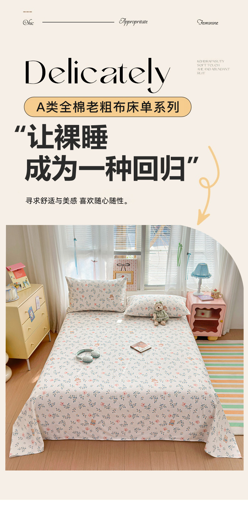 (总)女子家纺 2026新款全棉老粗布床单,冰淇淋,蝶恋花,丁香紫,风月-米,海蓝,幻彩,简爱,简恋,玛奇朵,梦境,奶酪,泡芙-兰,奇奇兔,软萌,小甜甜,小圆满,星愿,醒春,幸运结,雪花银,雅灰,亚麻咖,樱桃粉,月白