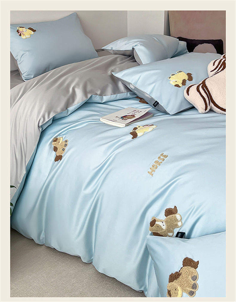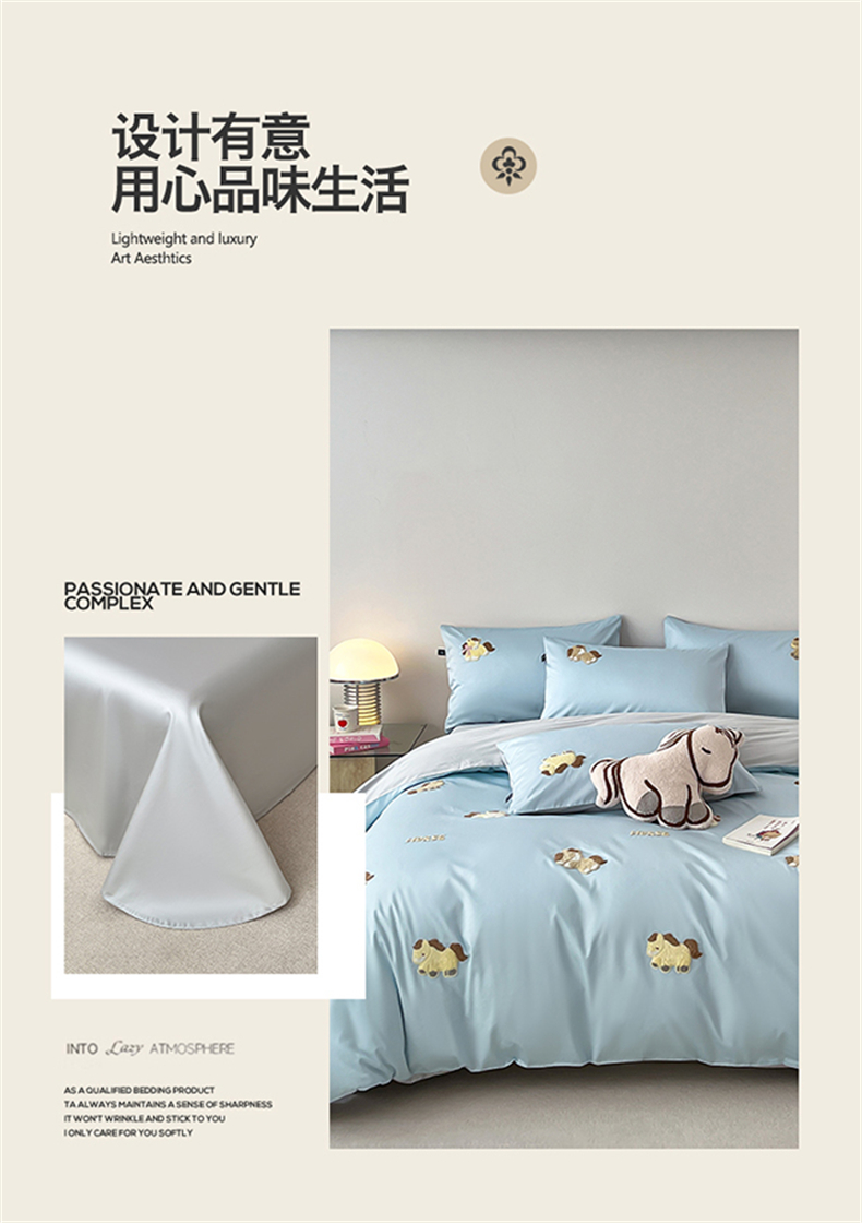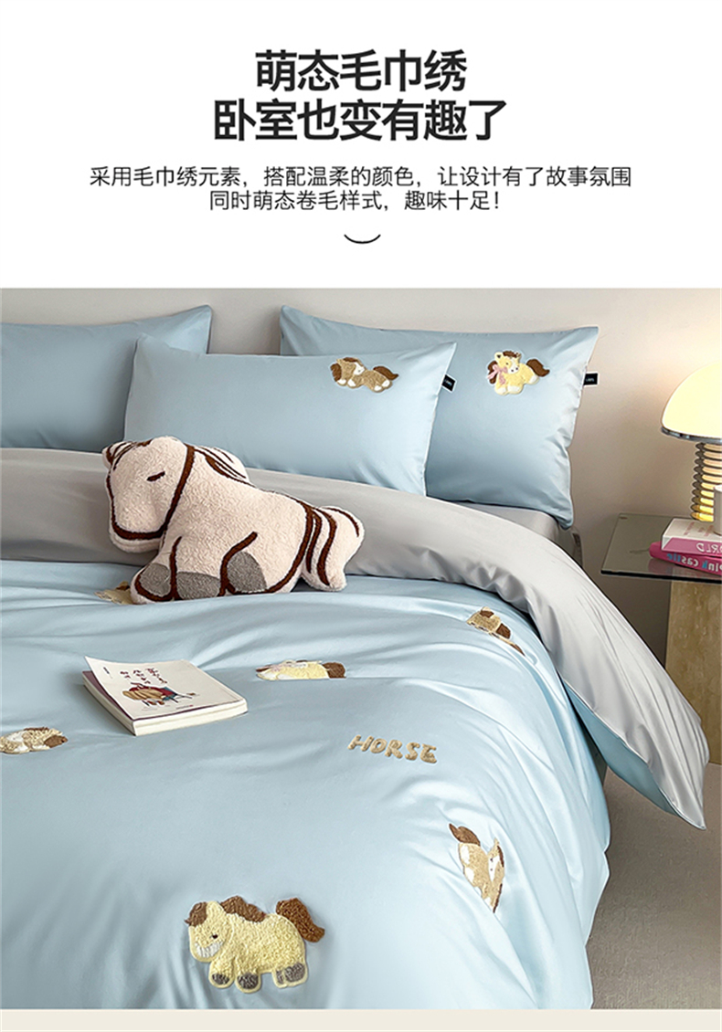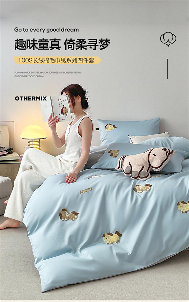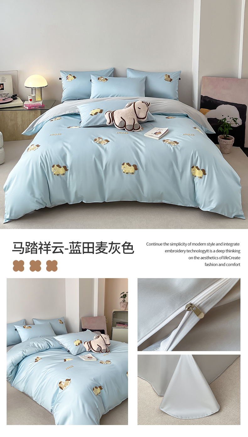 当前位置: 91家纺网 > 商品网购 > 床品套件 > 四件套 > 长绒棉四件套 > 蓝米卡夫 2026春季新款-100S长绒棉毛巾绣系列四件套-马踏祥云(礼盒) 马踏祥云-蓝田麦灰色