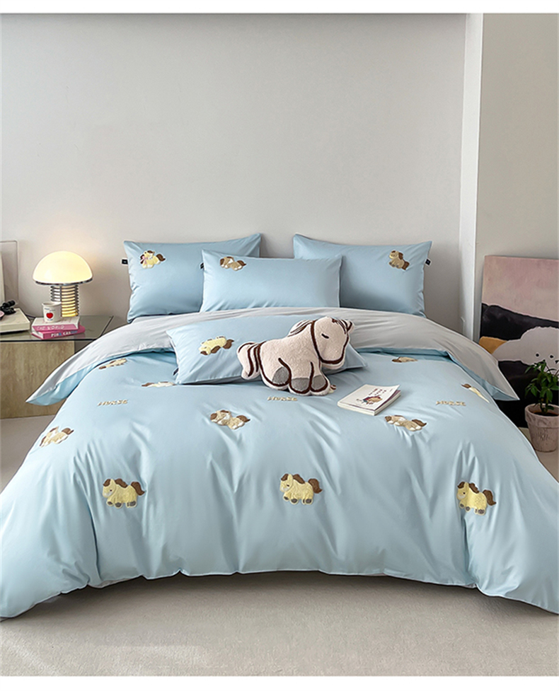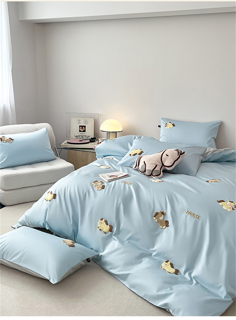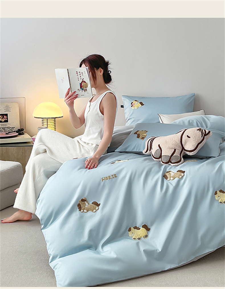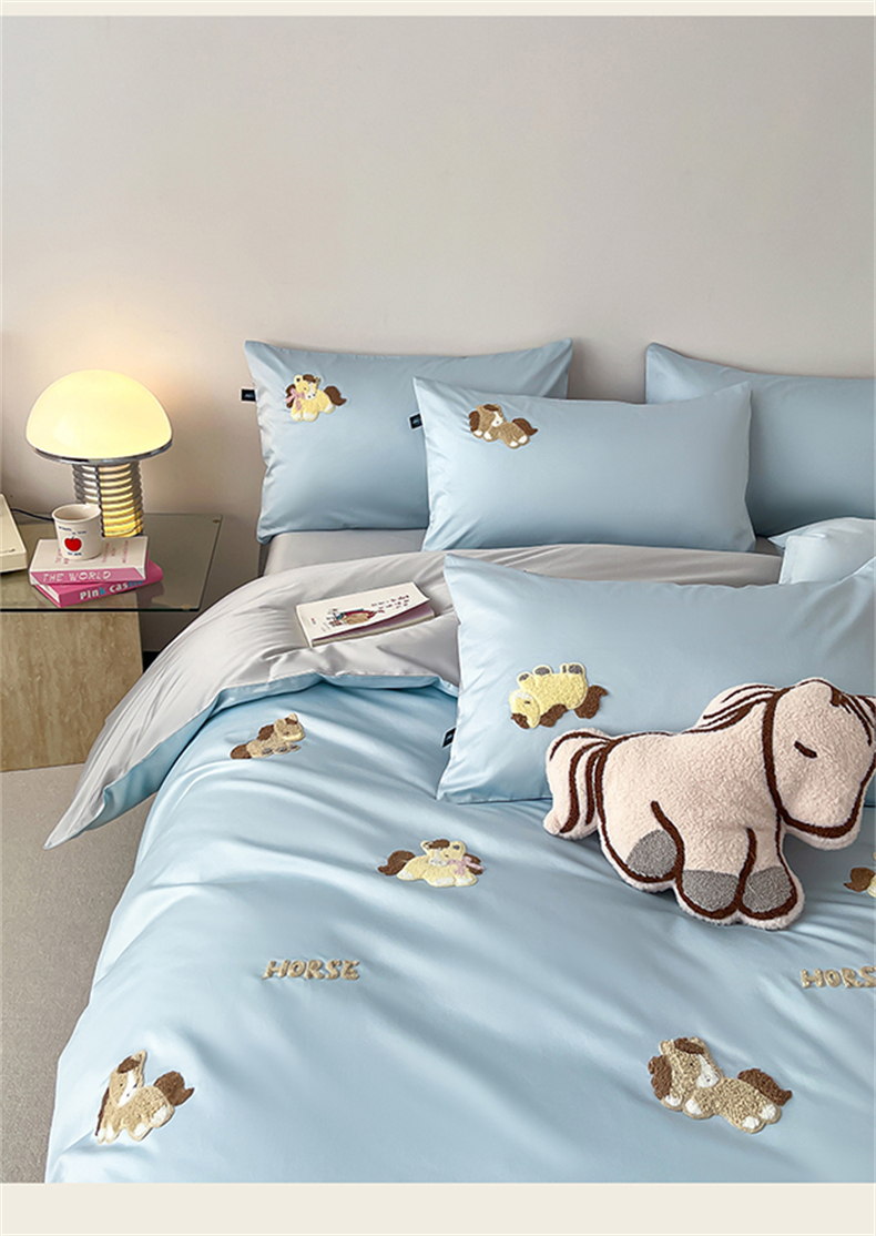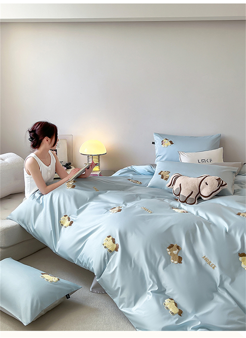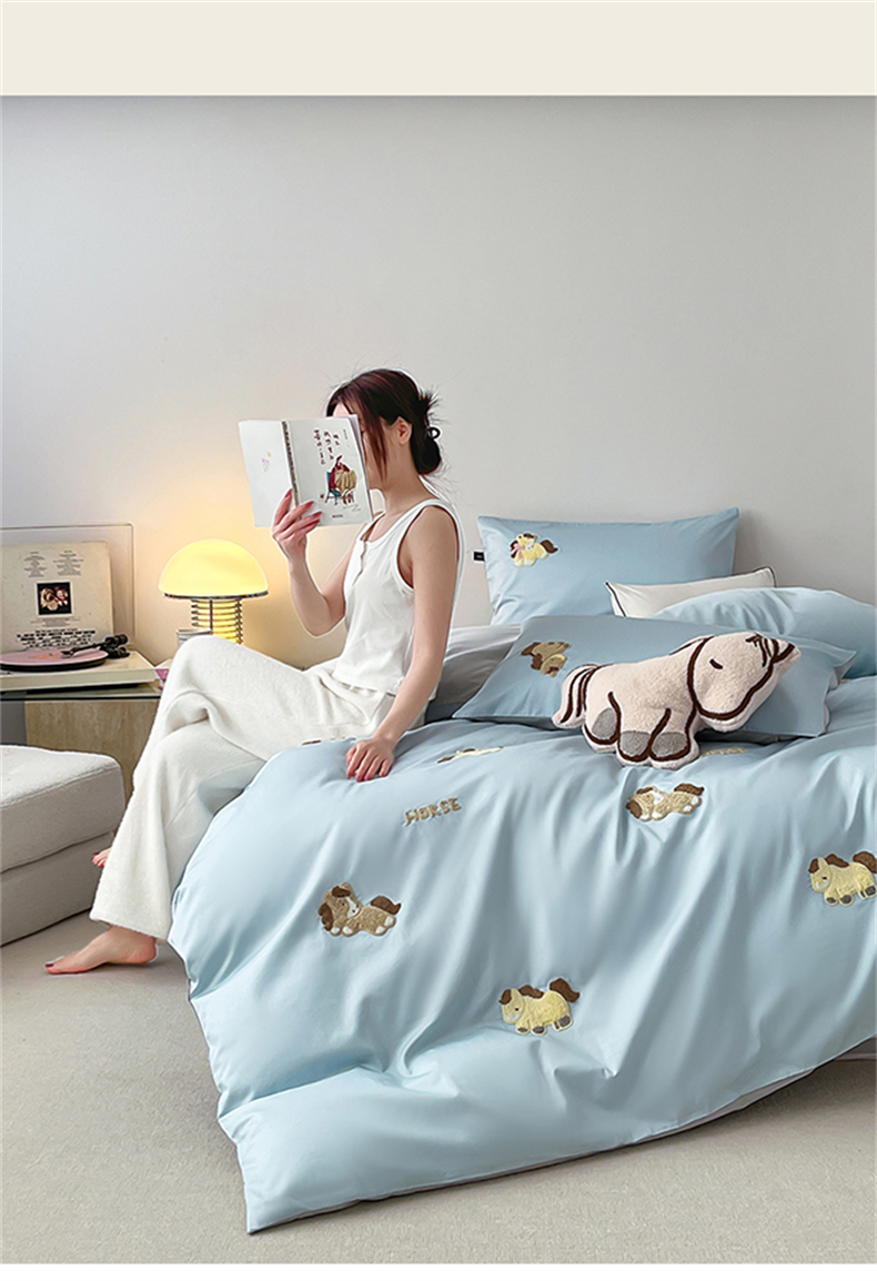当前位置: 91家纺网 > 商品网购 > 床品套件 > 四件套 > 长绒棉四件套 > 蓝米卡夫 2026春季新款-100S长绒棉毛巾绣系列四件套-马踏祥云(礼盒) 马踏祥云-蓝田麦灰色