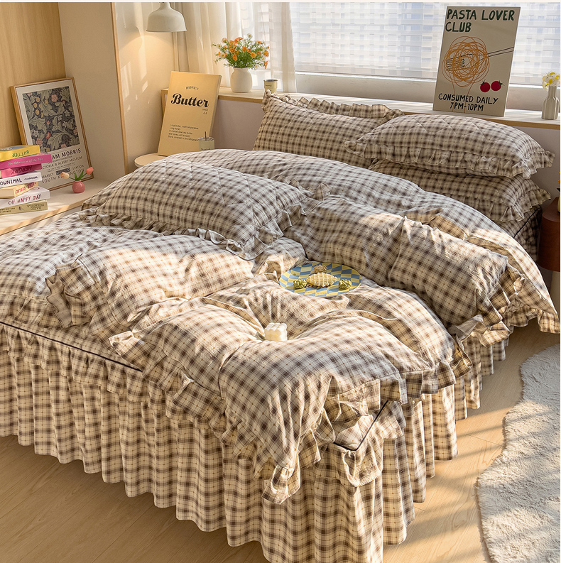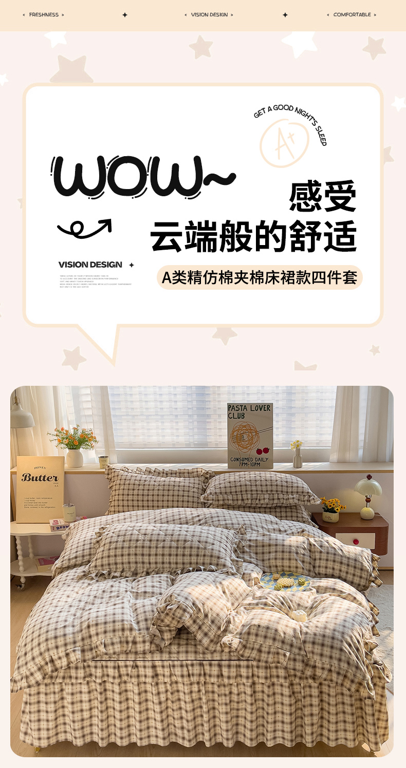 当前位置: 91家纺网 > 商品网购 > 床品套件 > 四件套 > 化纤普通四件套 > 优家居 2026新款精仿棉夹棉床裙四件套水洗棉韩版公主风花边床裙被套直播外贸定制 星尚