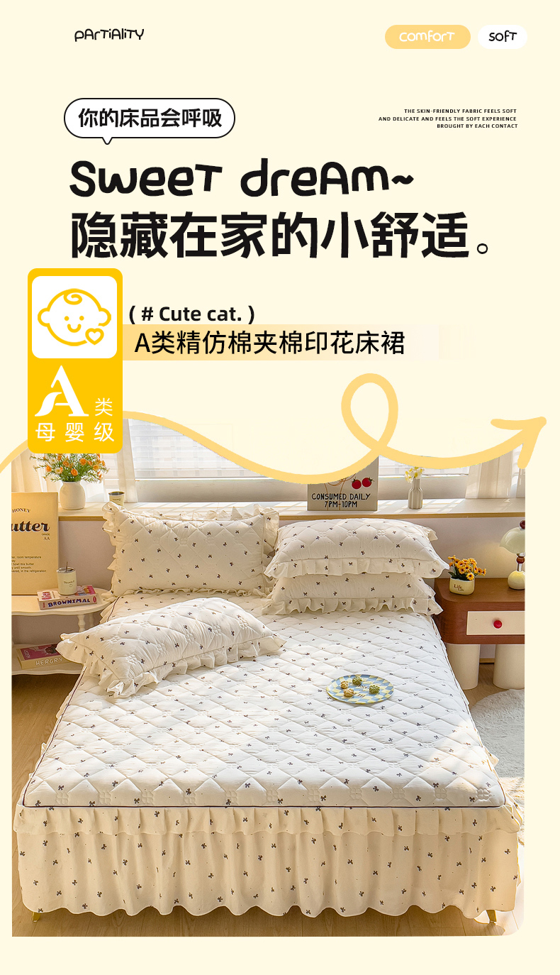 • 91家纺网 家纺一手货源 找家纺 (总)优家居 2026新款精仿棉夹棉床裙三件套水洗棉韩版公主风花边床裙直播外贸定制,贝贝南瓜,情意绵绵,海芋恋,情人节,星尚,丝丝心动,潘多拉-米,蝶舞翩翩,爱心熊,北岛之恋,潘多拉-兰,星星熊