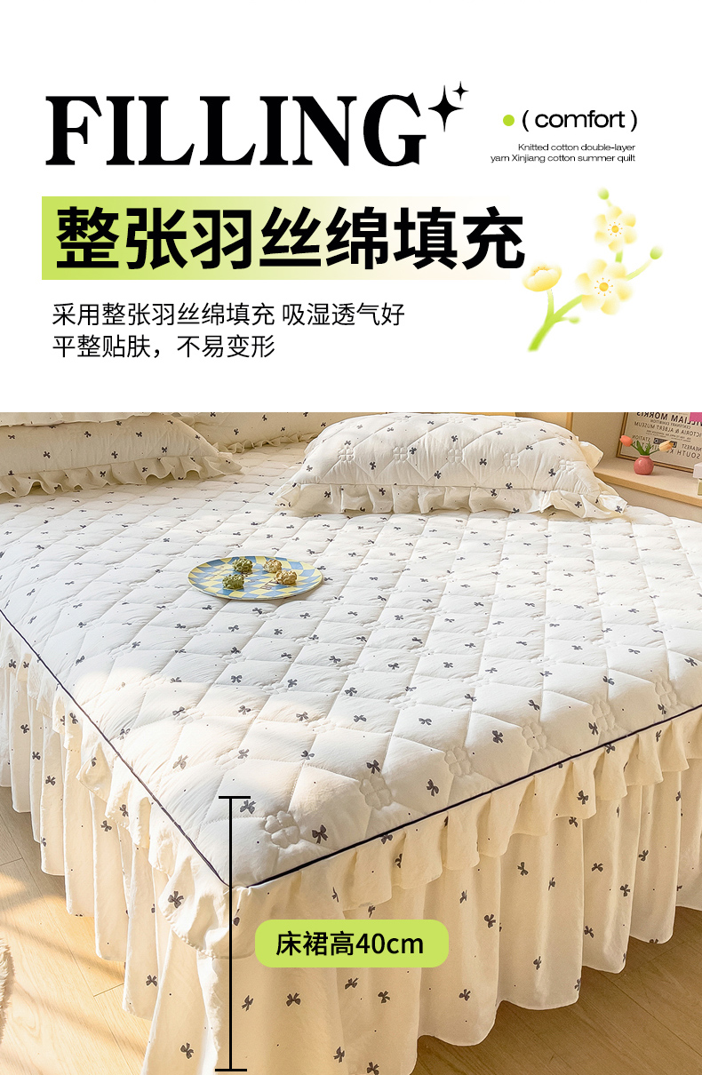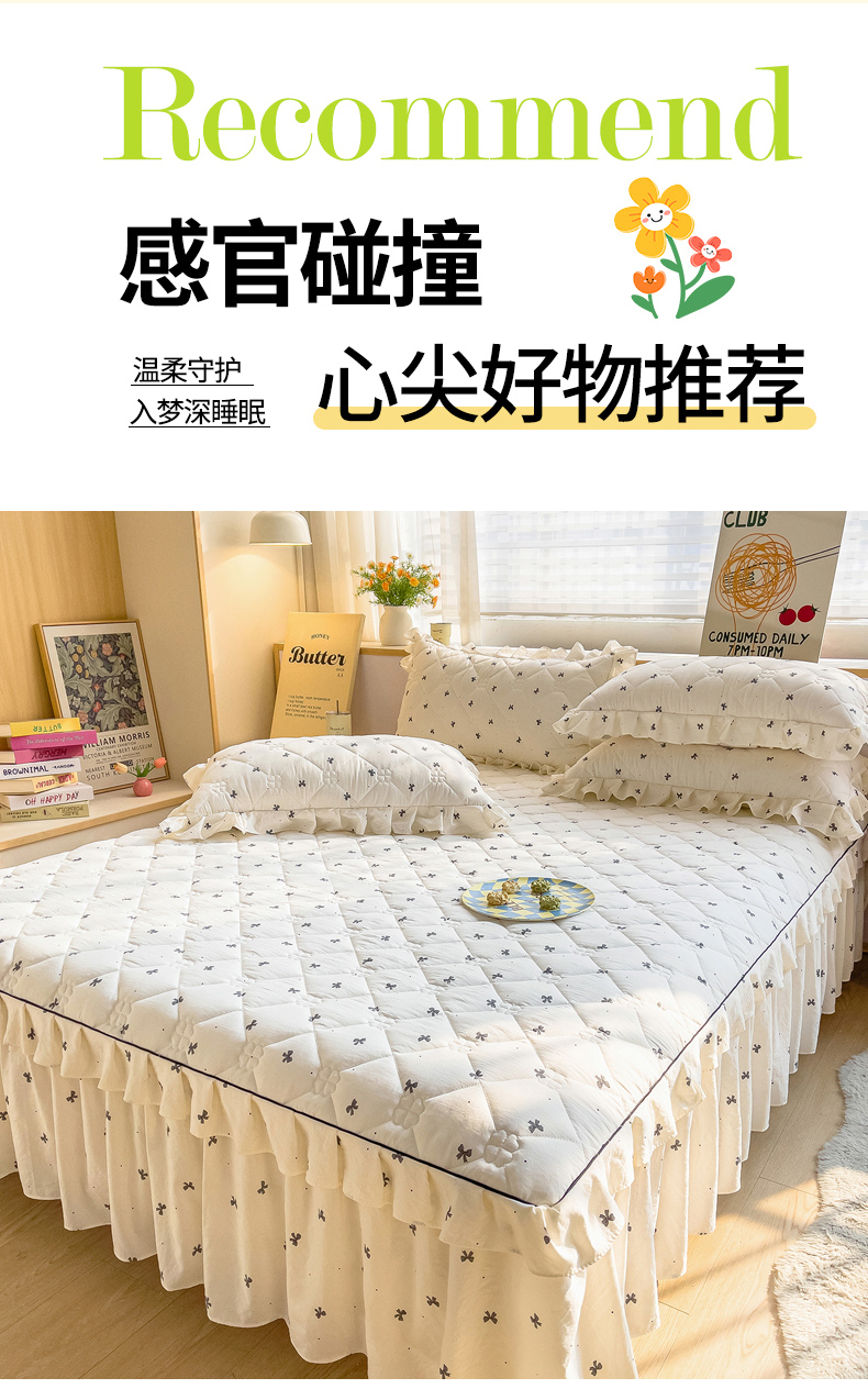 • 91家纺网 家纺一手货源 找家纺 优家居 2026新款精仿棉夹棉床裙三件套水洗棉韩版公主风花边床裙直播外贸定制 情人节