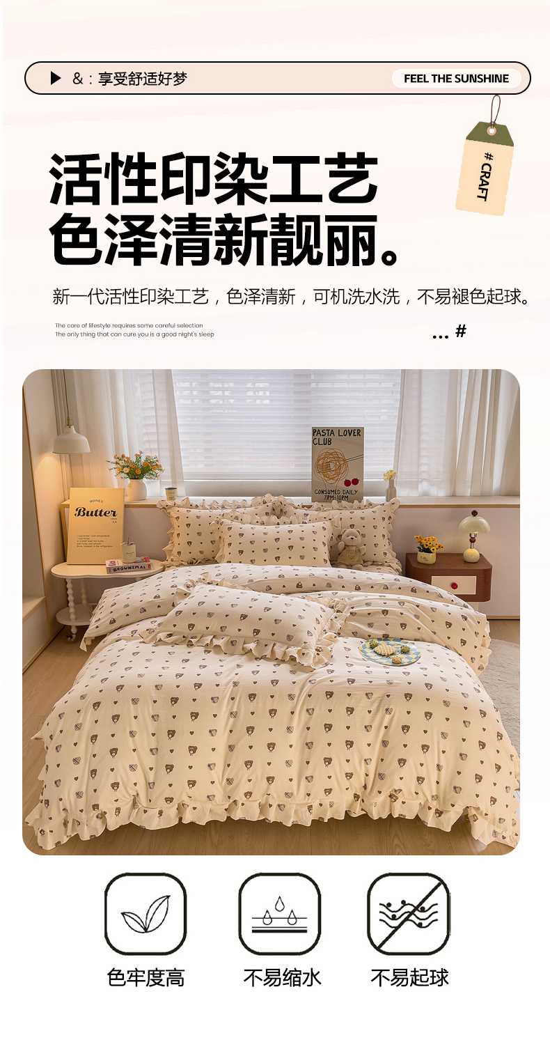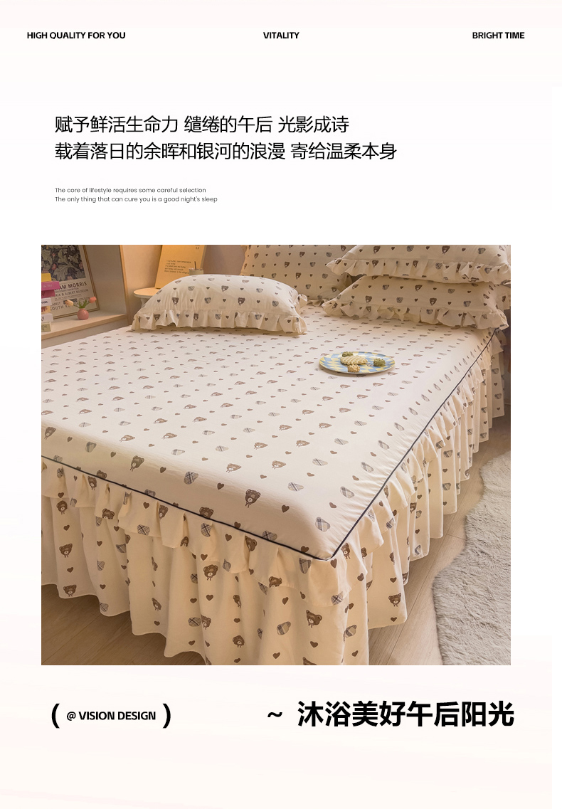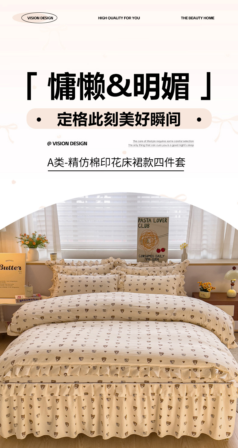 当前位置: 91家纺网 > 商品网购 > 床品套件 > 四件套 > 其它四件套 > 优家居工厂店 2026新款精仿棉床裙四件套水洗棉韩版公主风花边床裙单被套直播外贸定制 爱心熊