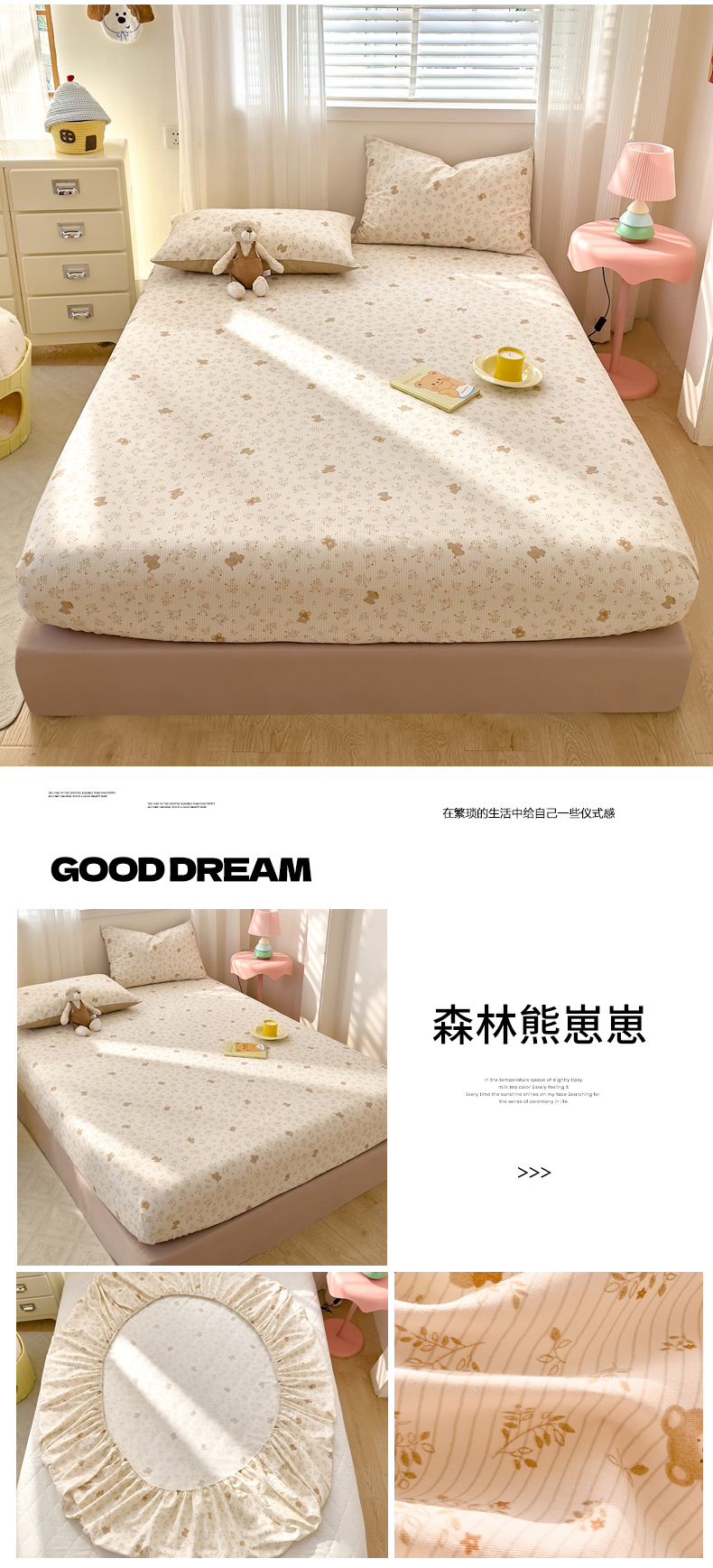 (总)DoDo 兜兜 2026新款全棉纯棉复古双层纱单品床笠系列(可定做尺寸),攀枝花,绿色,眠香铺,墨蝶,浅茶灰,青竹漫-灰,青竹漫-米,深绿色,睡花间,杏仁色,烟灰色,叶语-灰