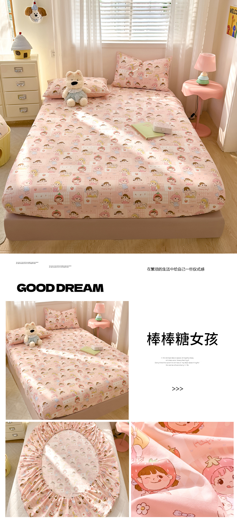 • 91家纺网 家纺一手货源 找家纺 DoDo 兜兜 2026年全棉纯棉可爱卡通单床笠 床笠单件 草莓小马-粉
