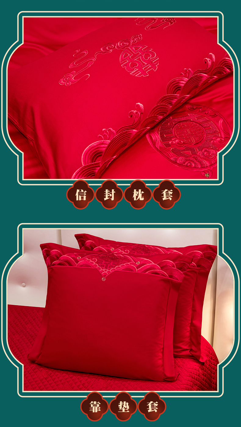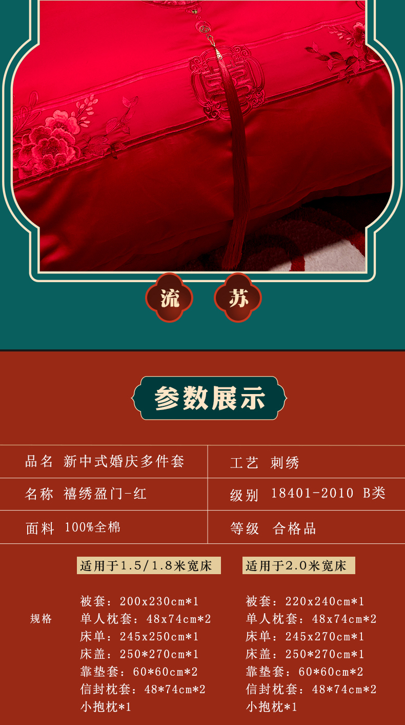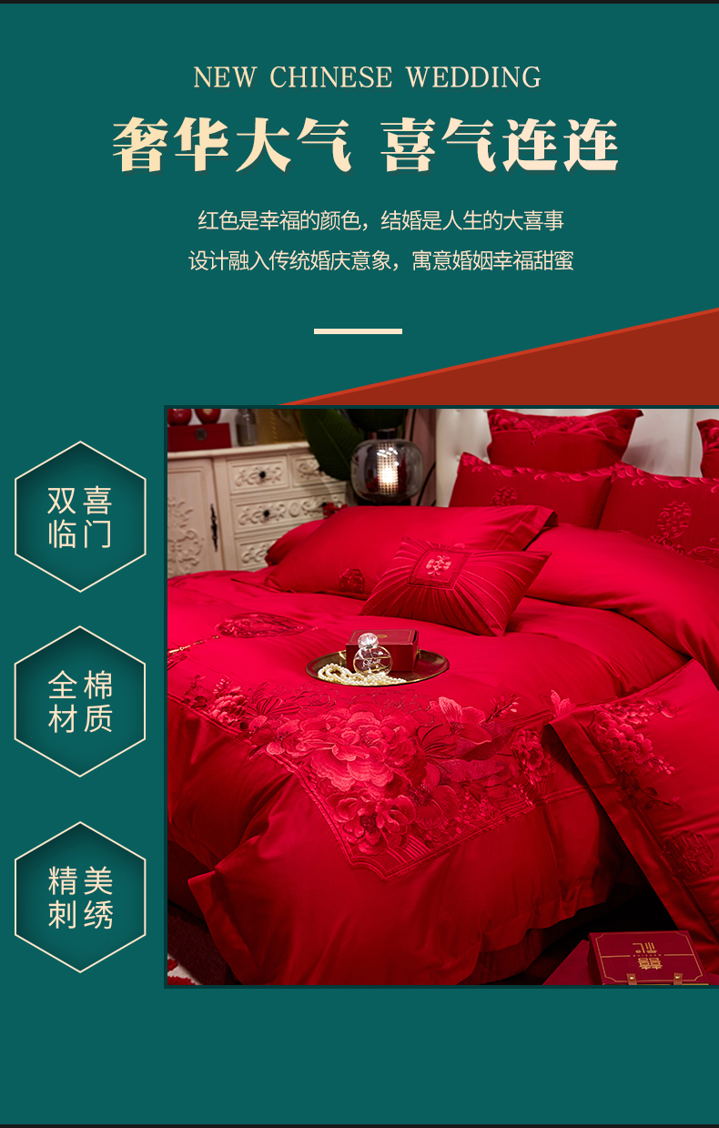 当前位置: 91家纺网 > 商品网购 > 床品套件 > 四件套 > 婚庆四件套 > 红番天婚庆 2026新款全棉刺绣新中式婚庆四件套多件套 禧绣盈门-红-时尚