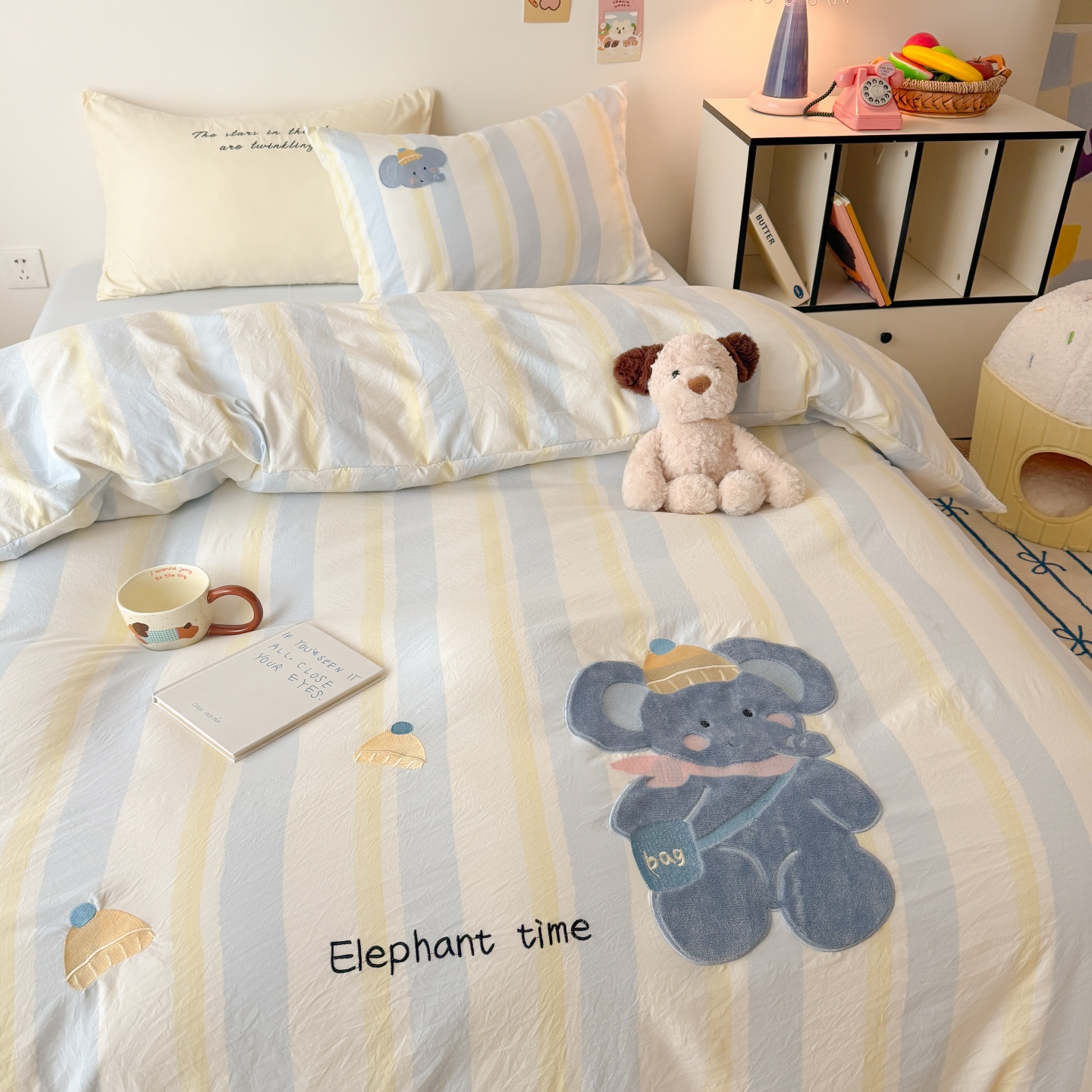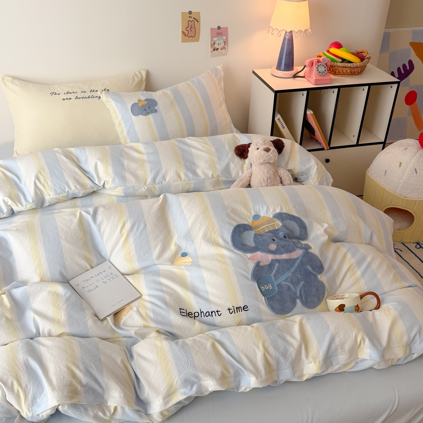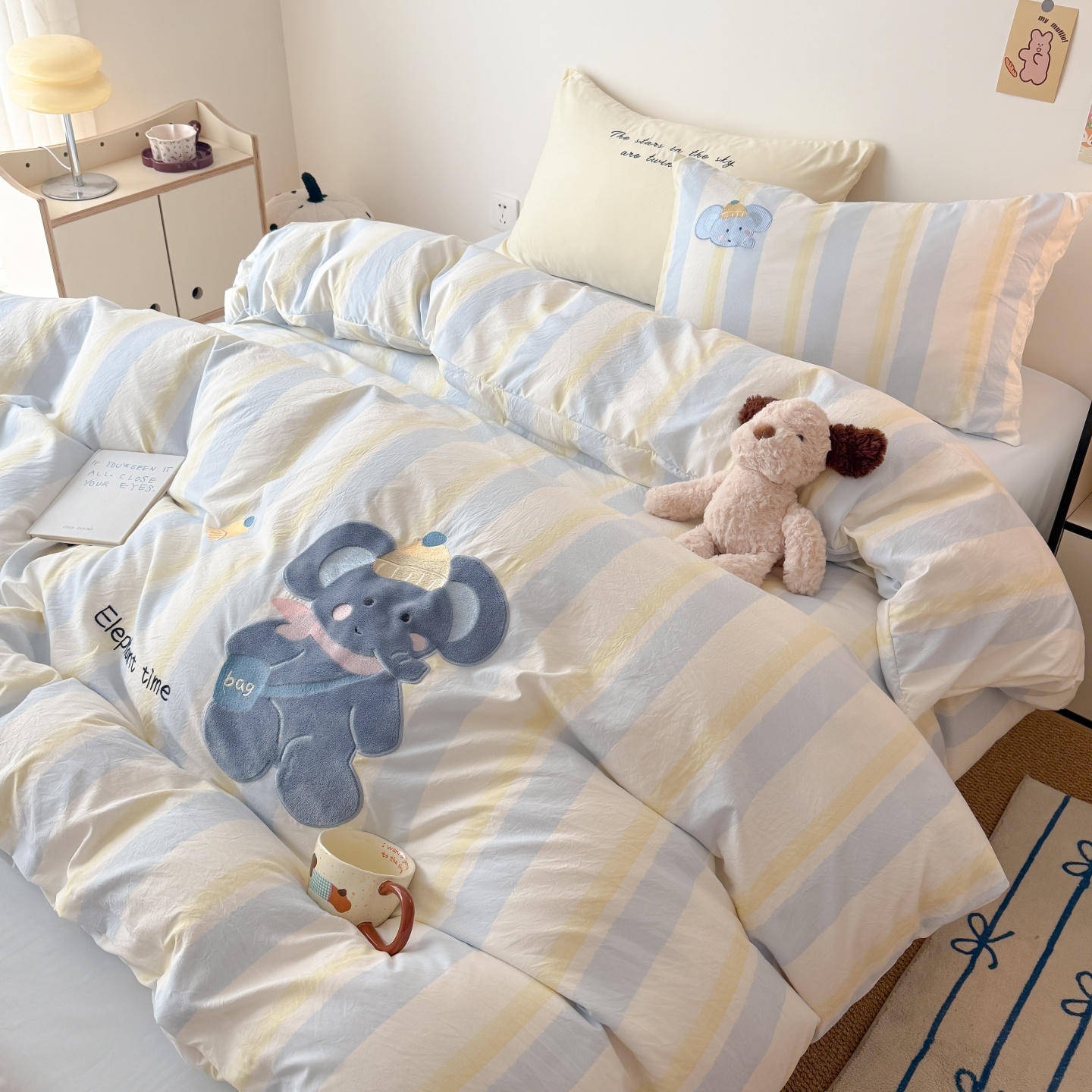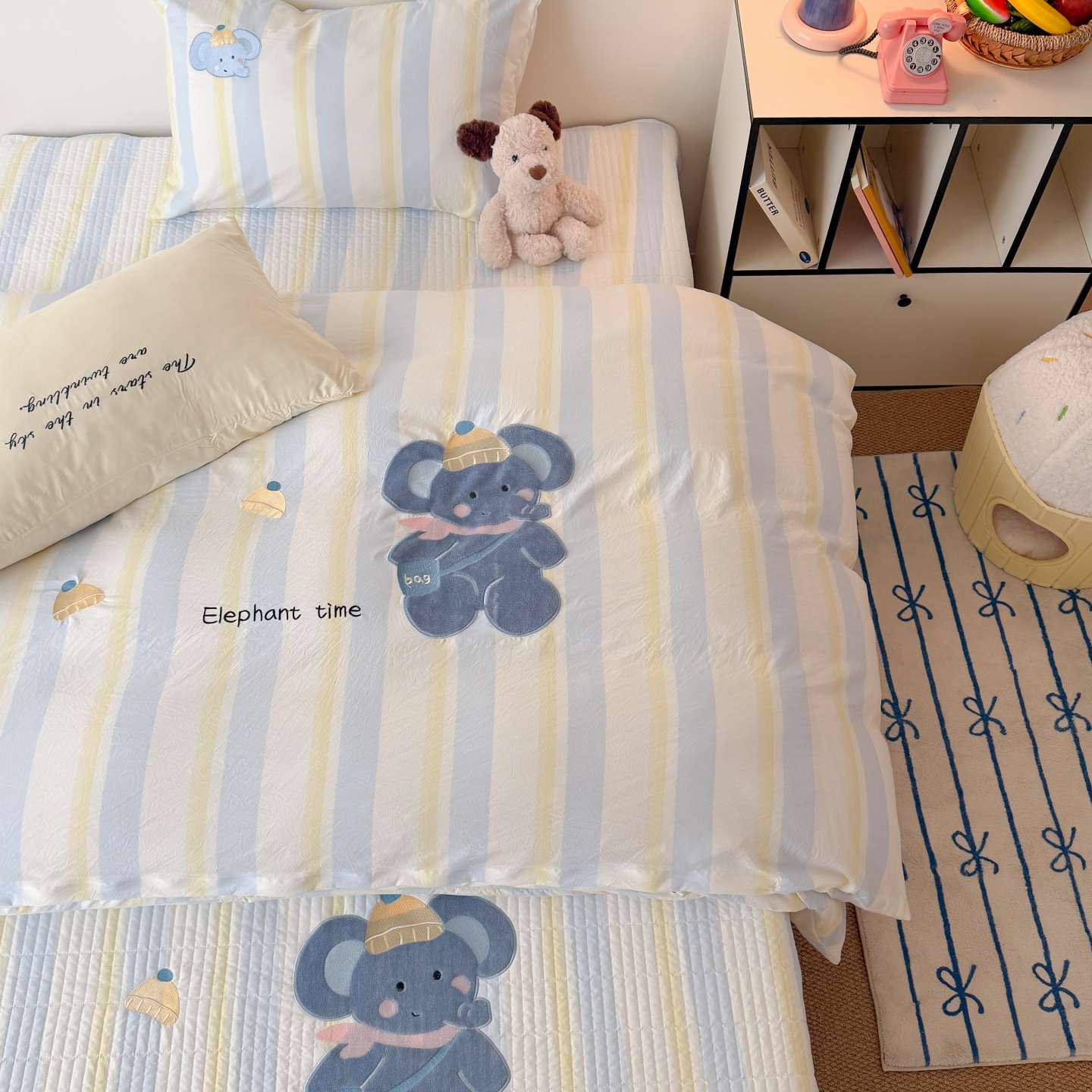 吾欢心 2026春夏新款水洗棉床盖款四件套夏被四件套 萌萌小象